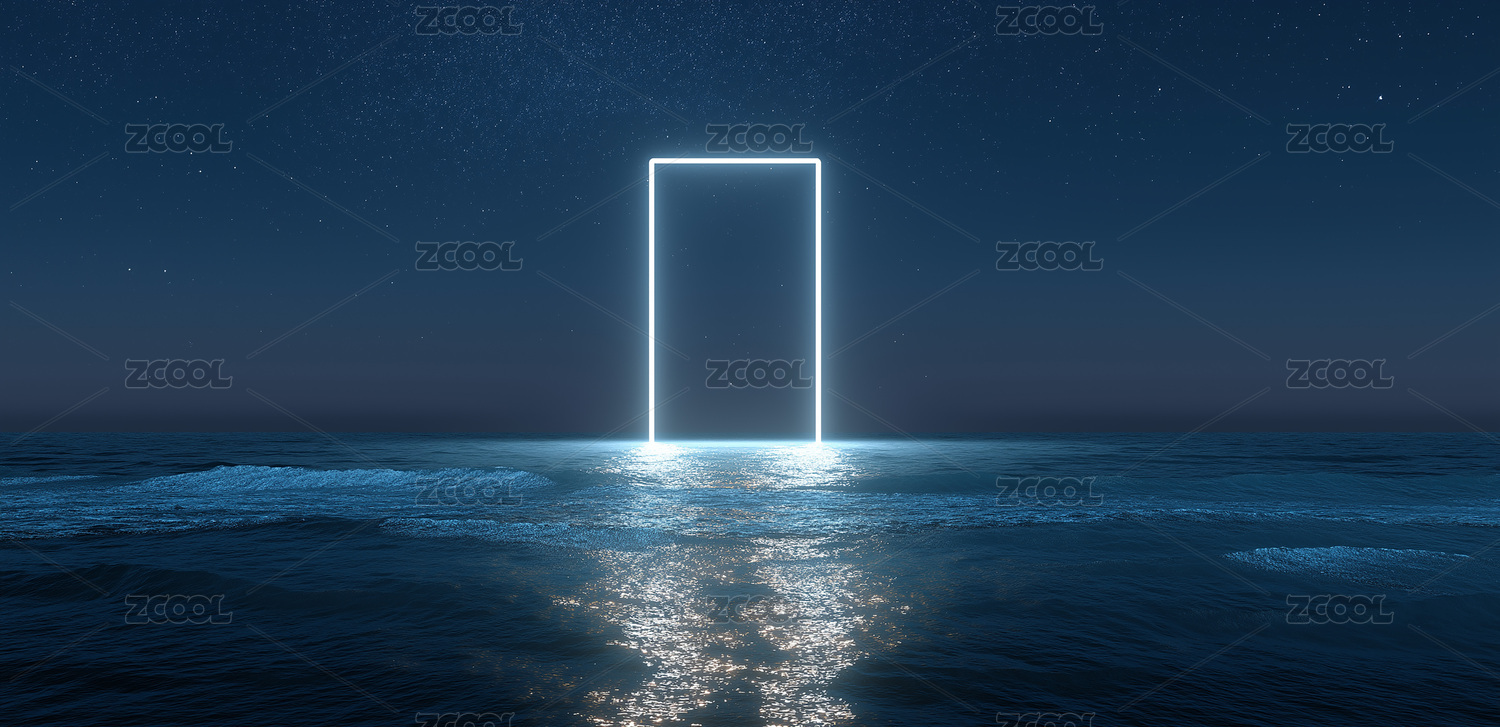 科技,未来,空间,发光,蓝色,景观,地平线,星空,夜晚,元宇宙