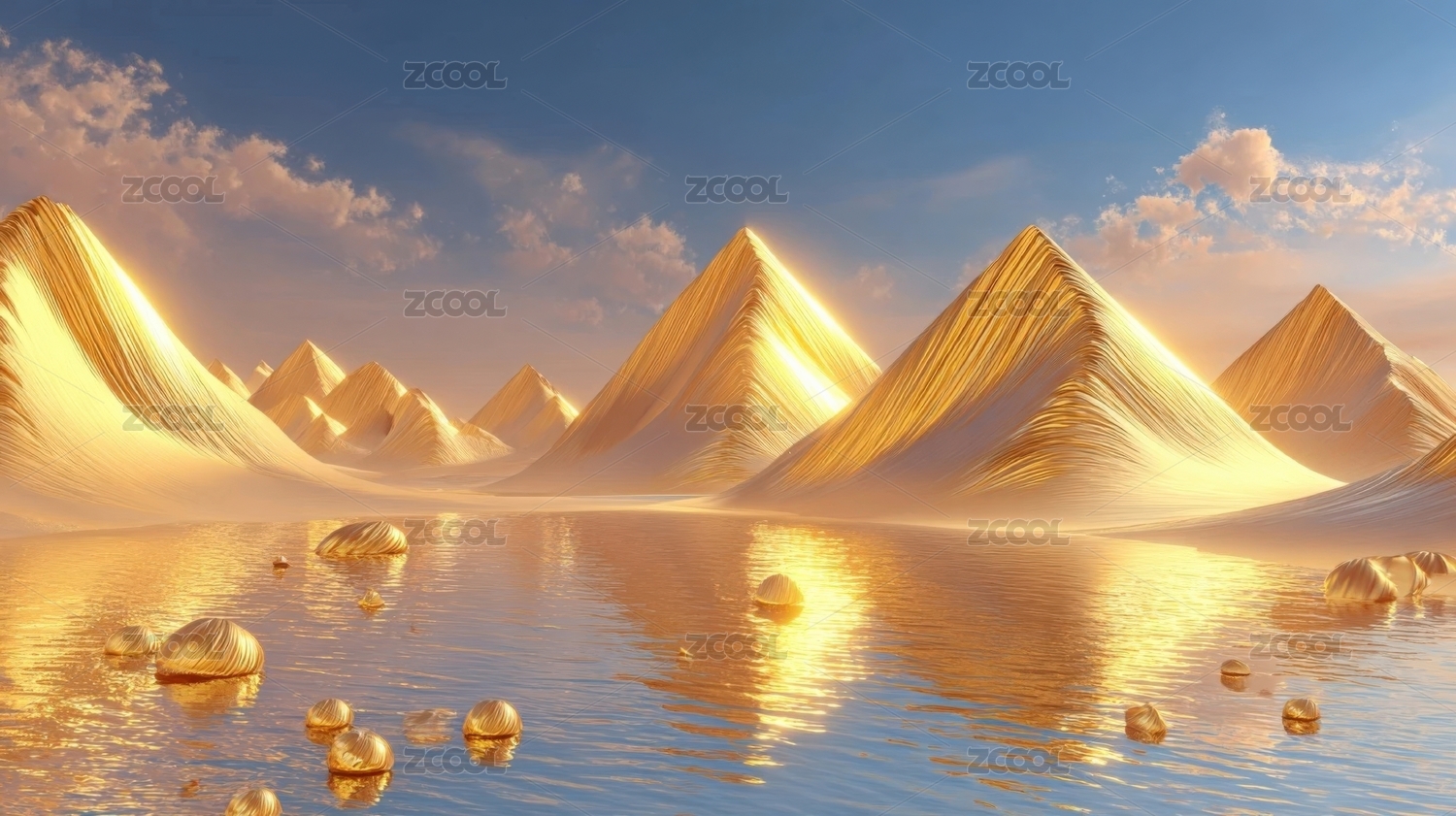 金色山脉景观数字艺术