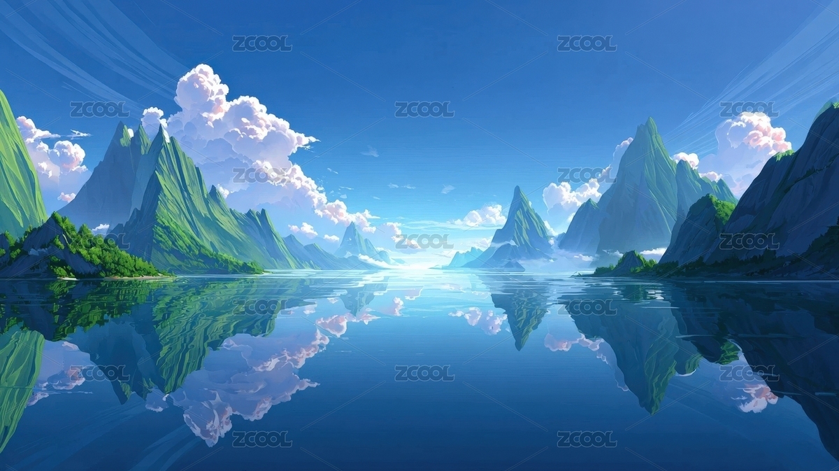 倒影,自然,风景,宁静,梦幻,色彩,蓝色,艺术,景色,数字艺术