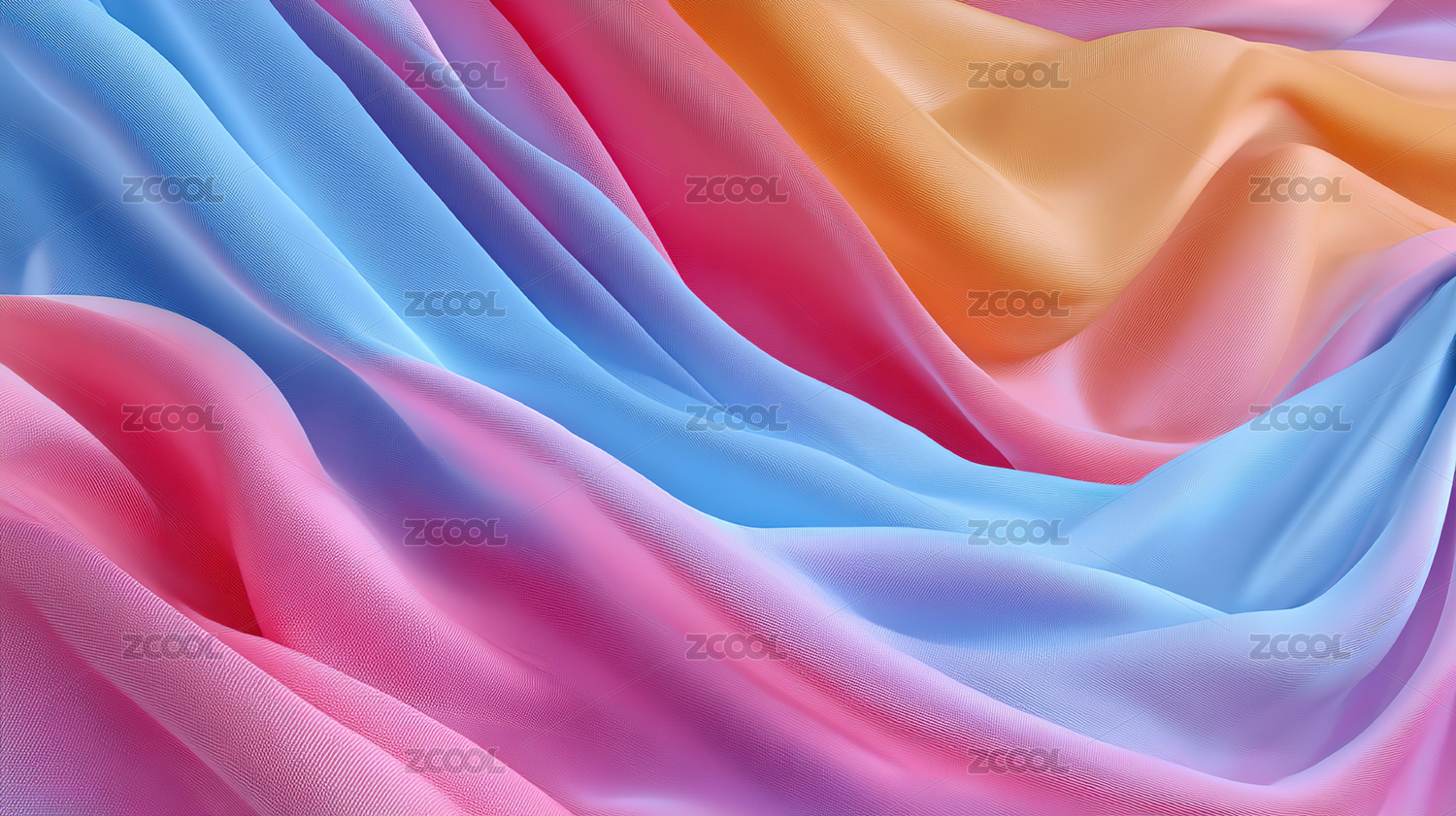 彩色丝绸布料褶皱特写