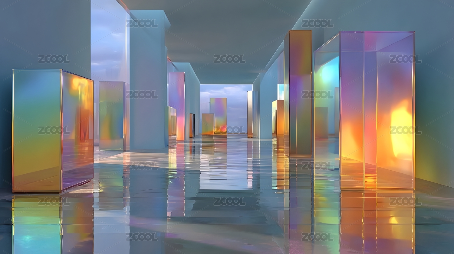 赛博朋克建筑室内空间展厅未来科技展台虚构