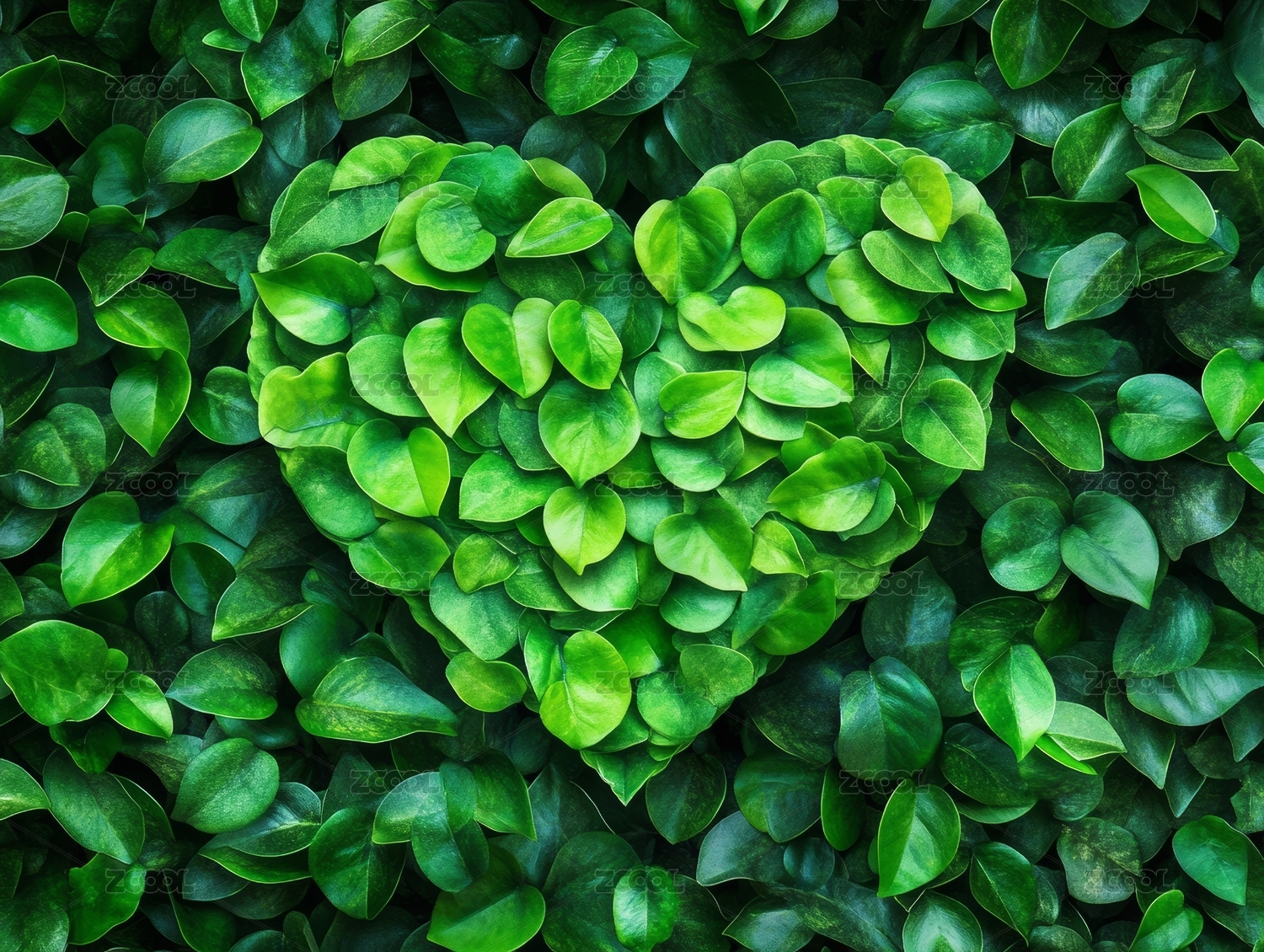 绿叶环绕的心形绿植图案