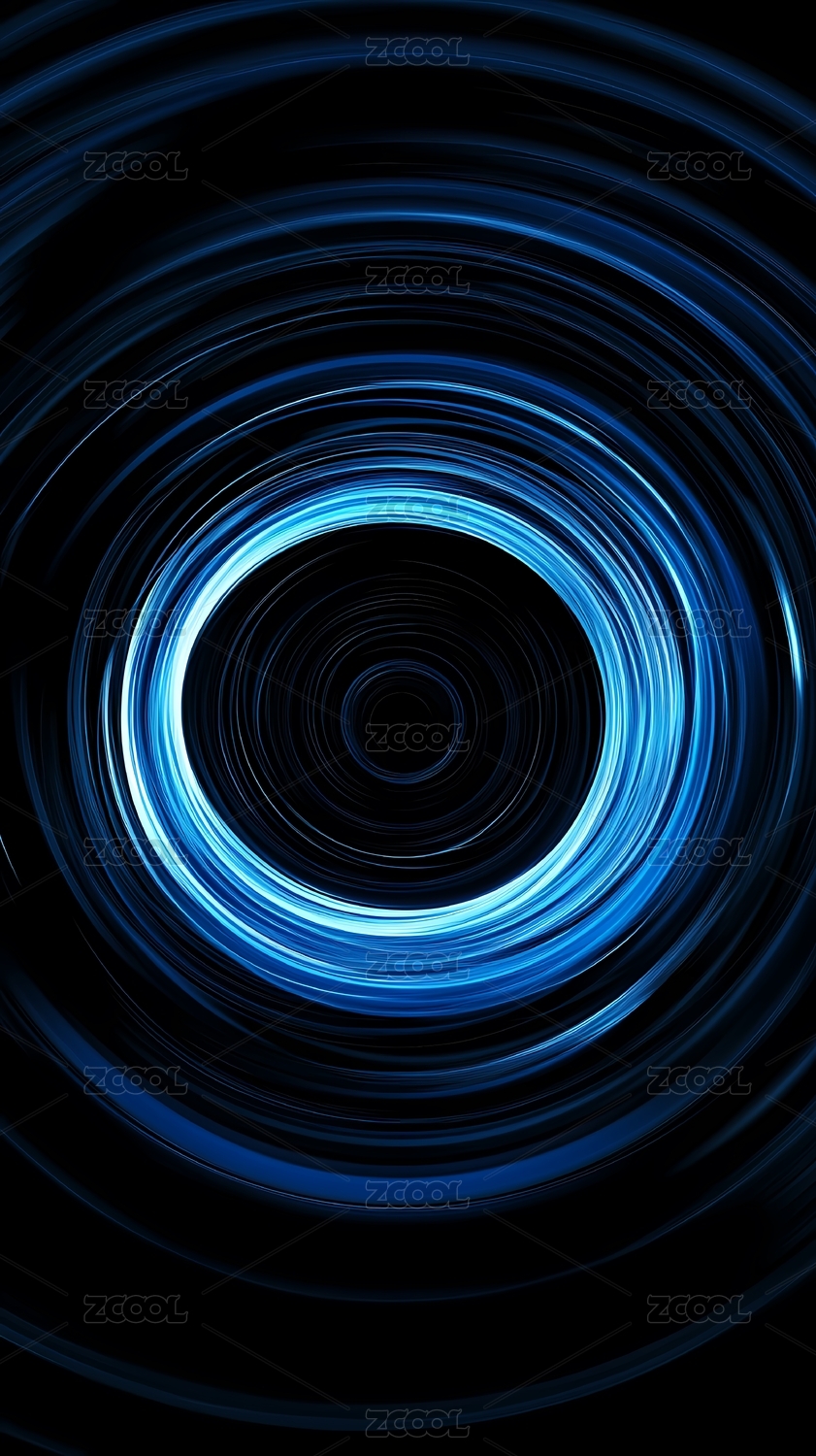 蓝色光圈在黑暗中旋转形成螺旋图案