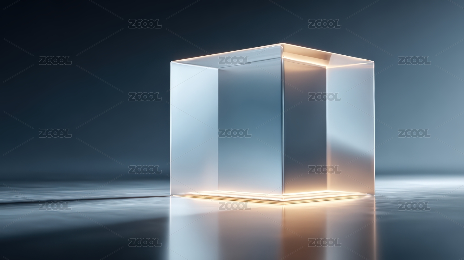 发光的立方体在光滑表面上
