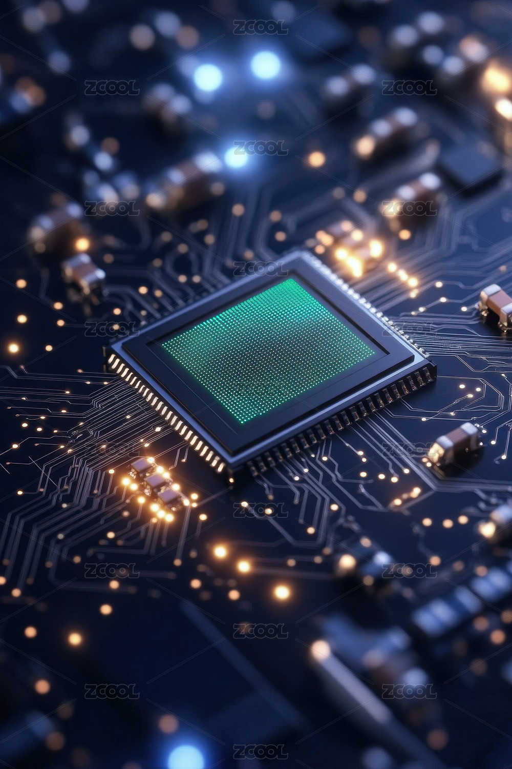 绿色电路板上的中央处理器芯片