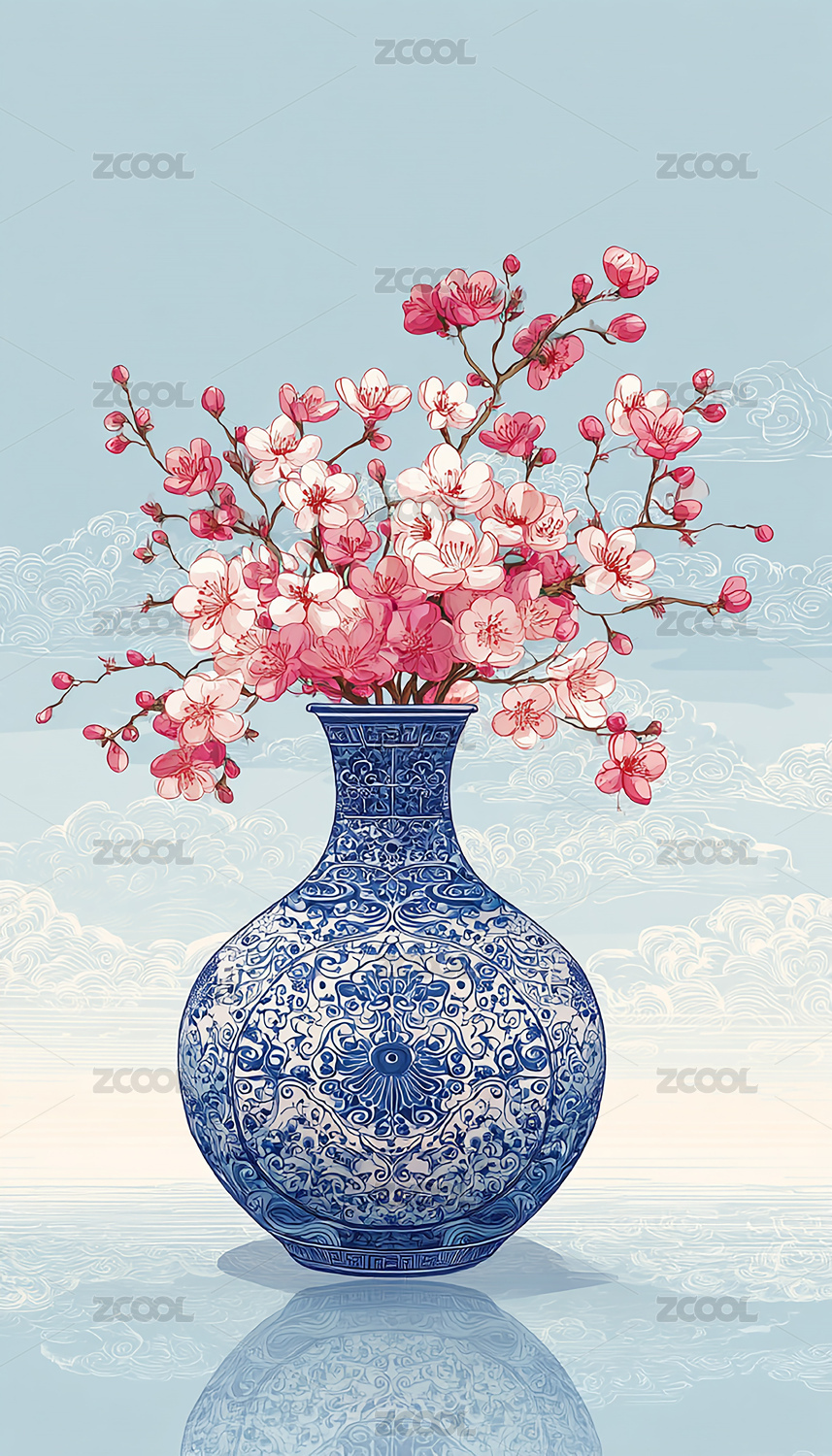 国风,新中式,东方,美学,清新,青花瓷,花瓶,素材