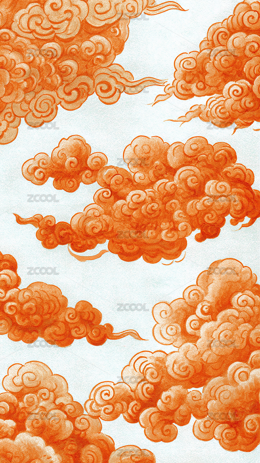 国风,水墨,晕染,橙色,祥云,纹理,背景,云纹