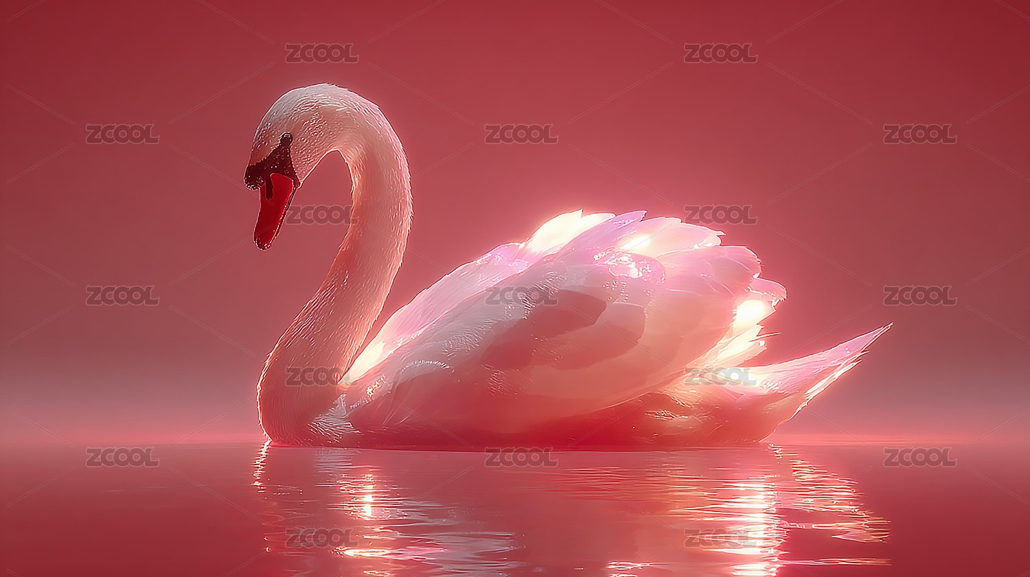 美丽,白天鹅,光晕,梦幻,粉色,背景,插画