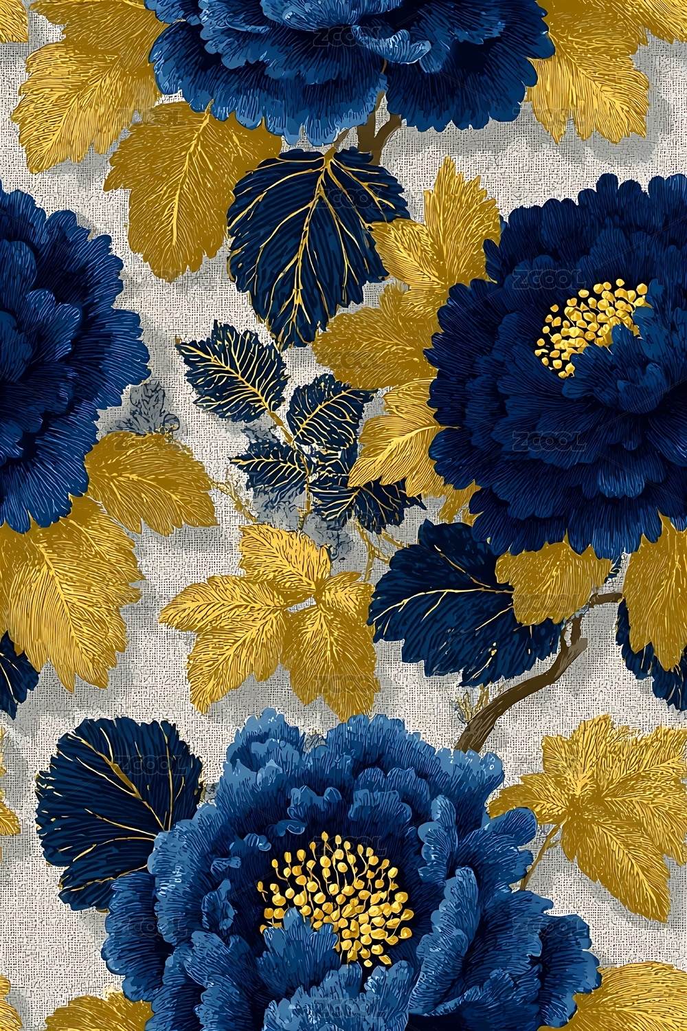 蓝金花卉图案
