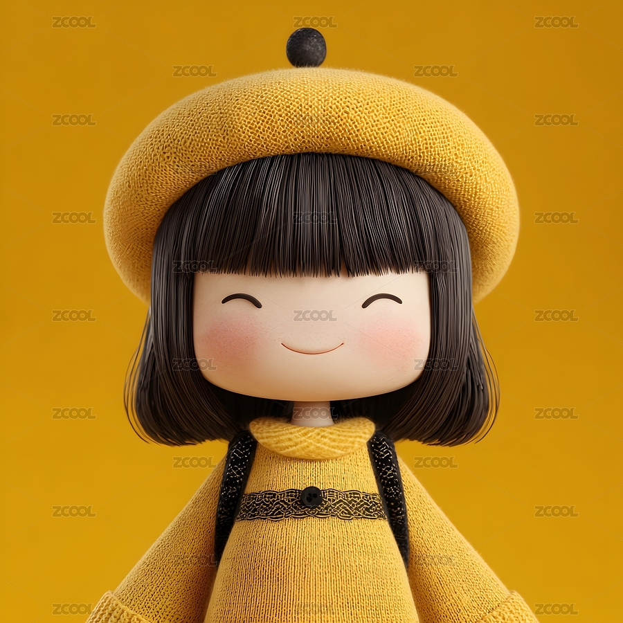 女孩,微笑,黄色,脸颊,纽扣,毛衣,短发,帽子,背包,黑色