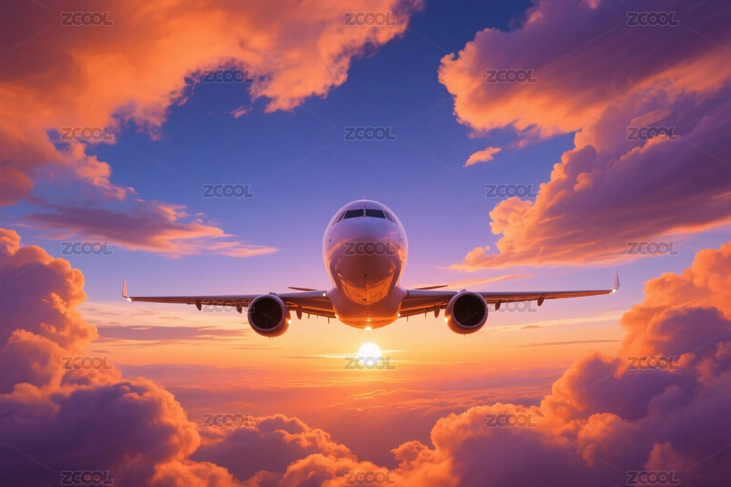 飞机,夕阳,天空,云朵,真实摄影,自然,风景,傍晚,霞光,旅行