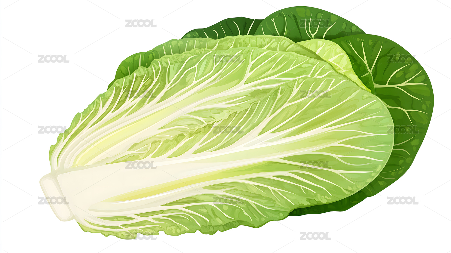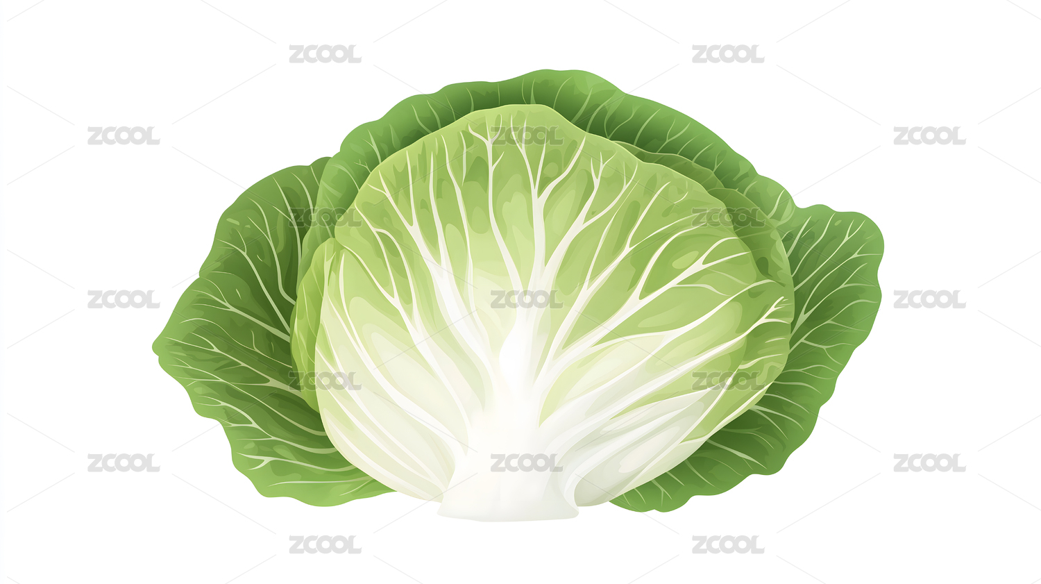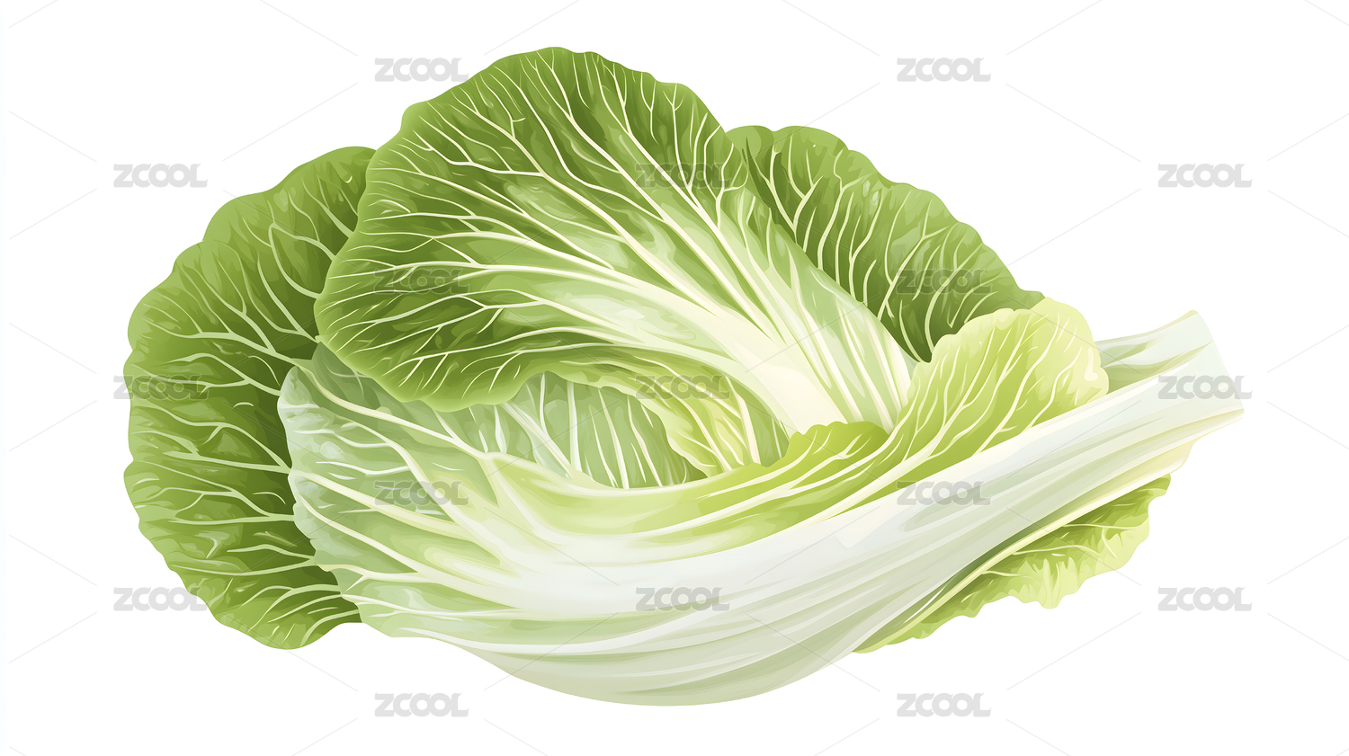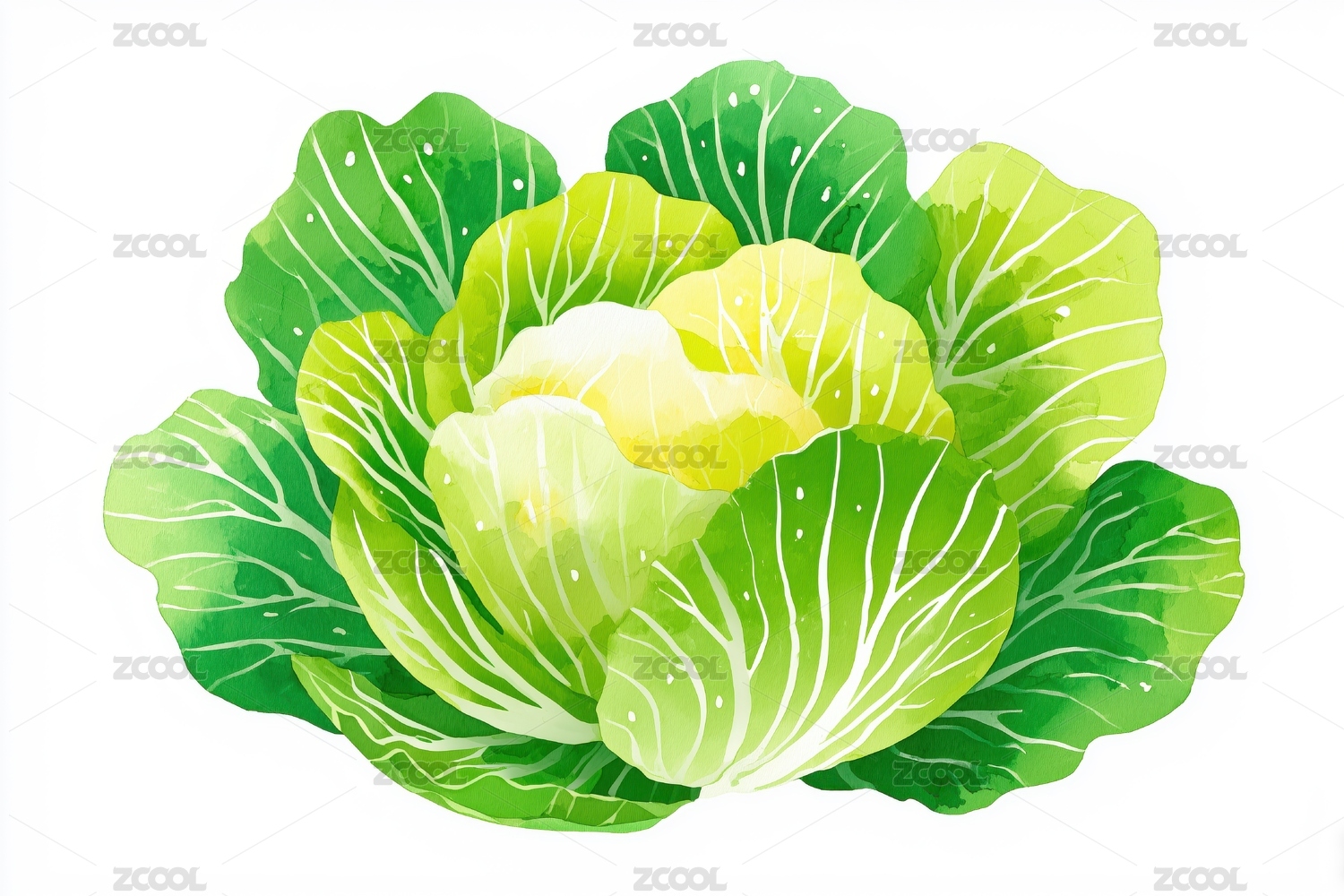 白背景新鲜白菜有机蔬菜手绘扁平水彩插画