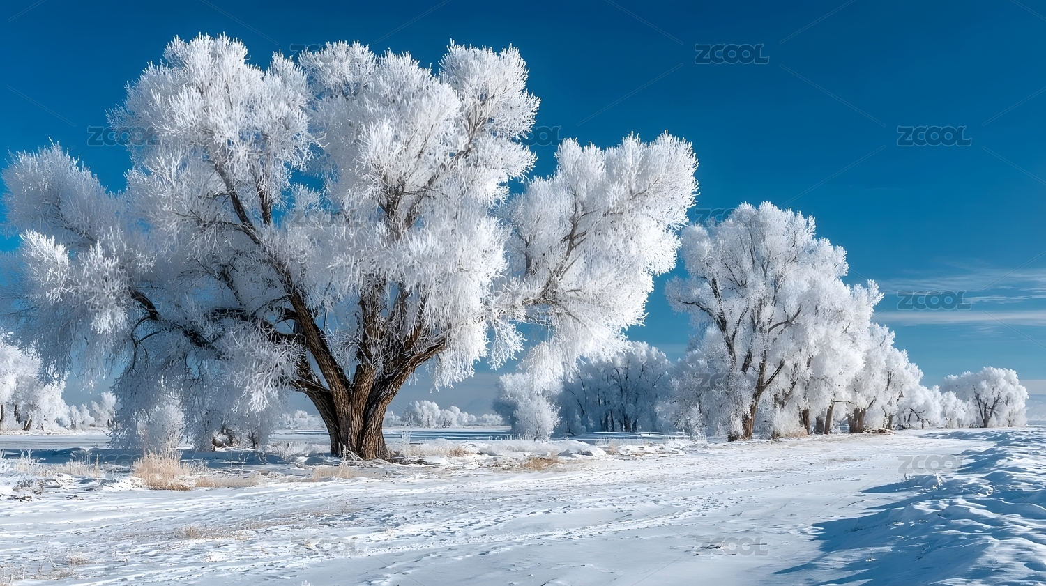 雪景,树木,蓝天,阳光,风景,自然,白色,雪地,冬天,森林