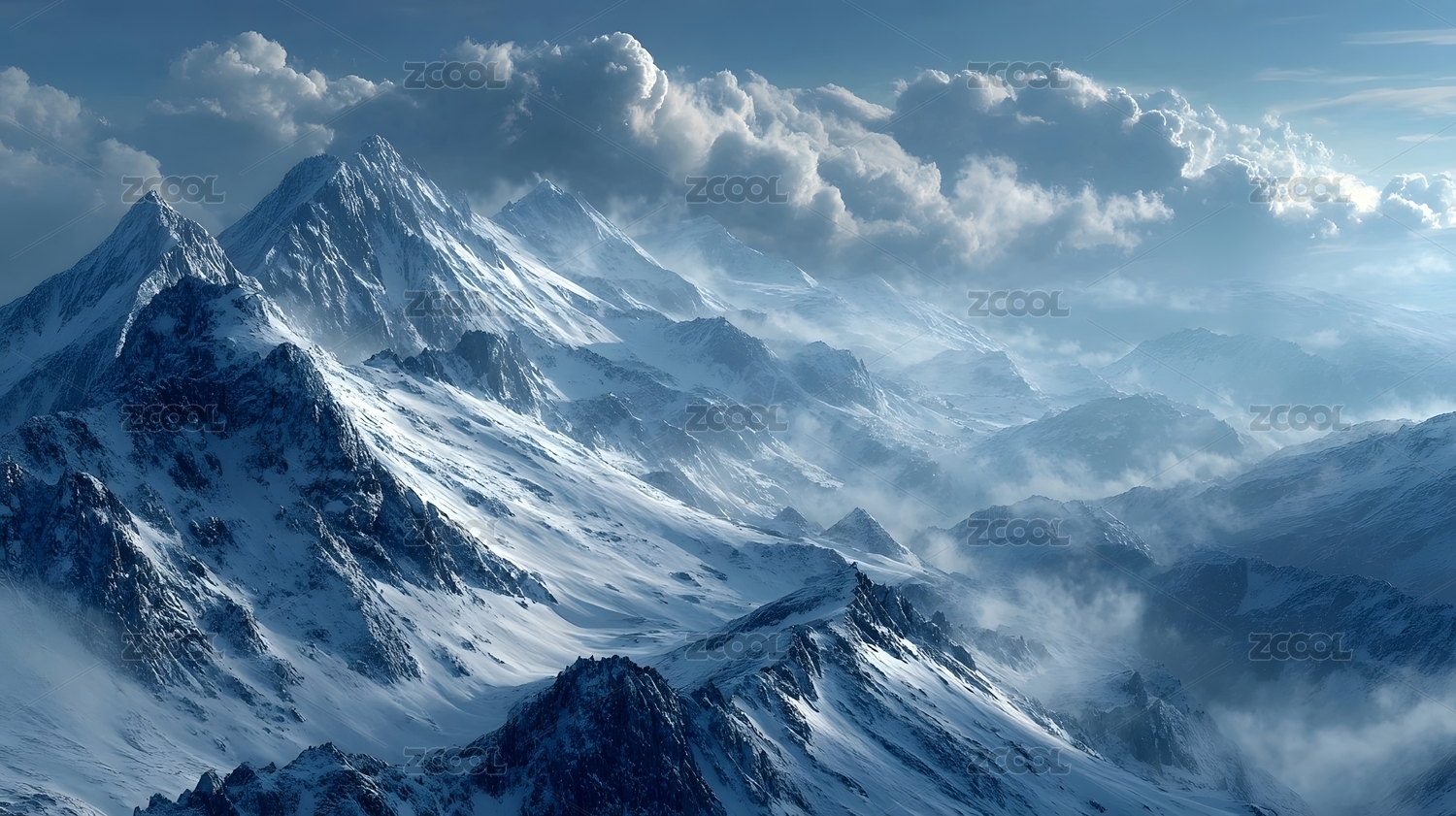 雪山层叠云雾缭绕