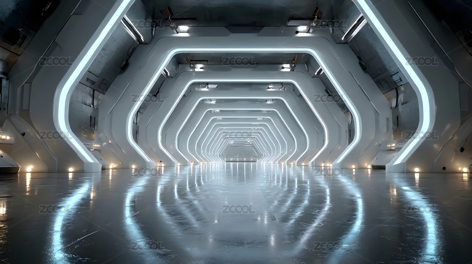 现代,设计,光影,光线,隧道,反射,地板,几何,光带,未来