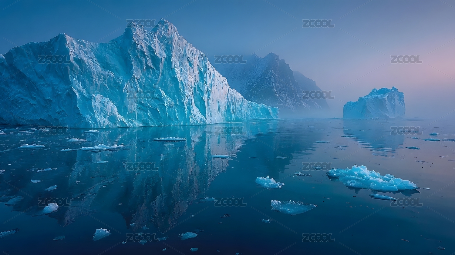 冰山倒影静谧海洋