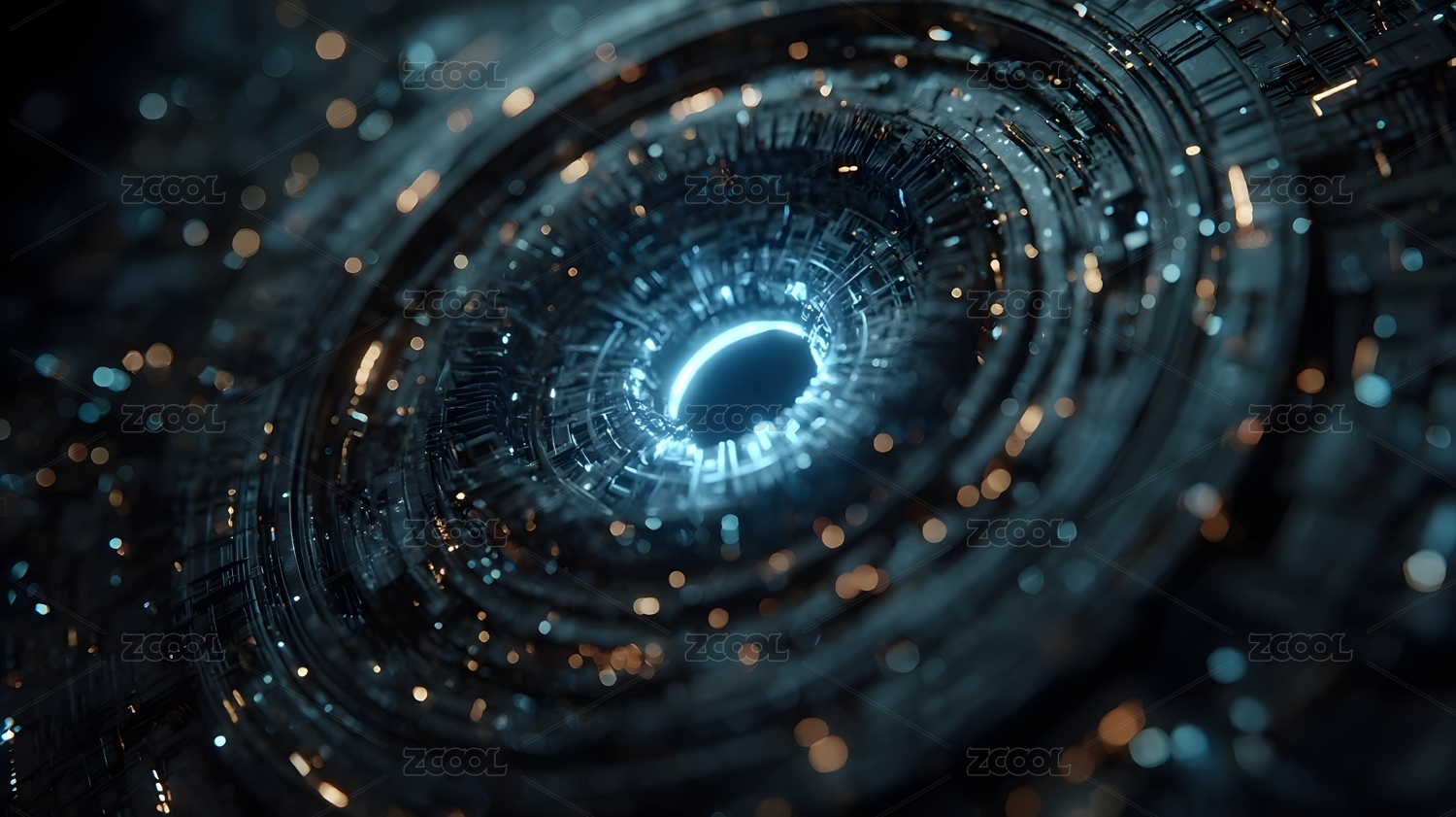 蓝色,现代,未来,光效,环形,数字,科技,光点,虚拟,抽象