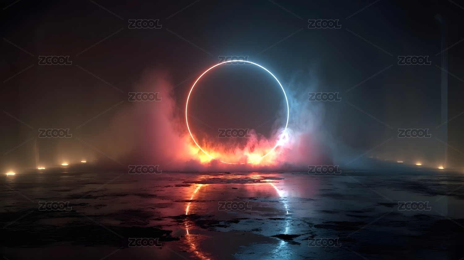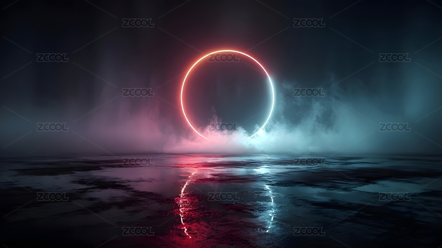 霓虹光环与烟雾背景
