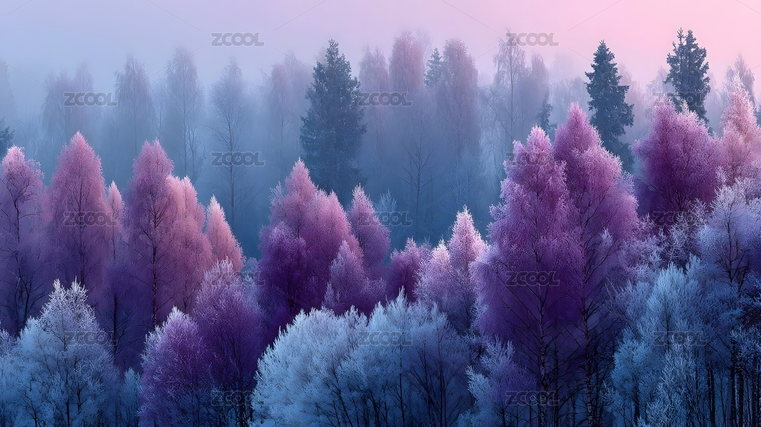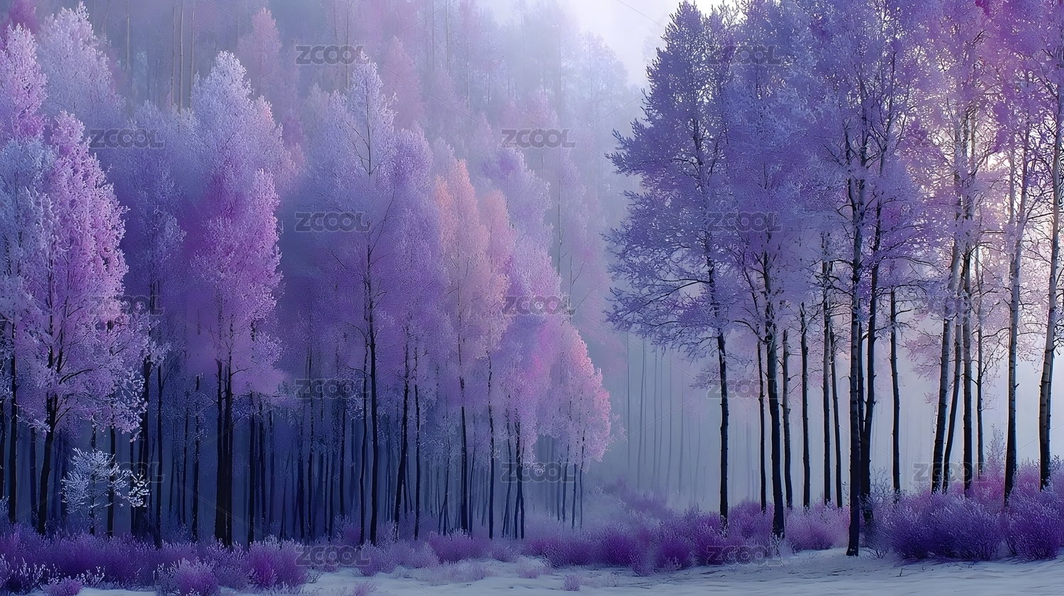 梦幻紫色森林晨雾