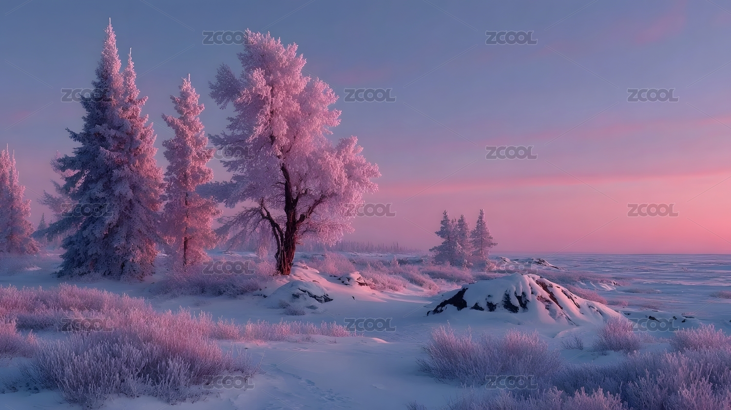 冬日粉雪树
