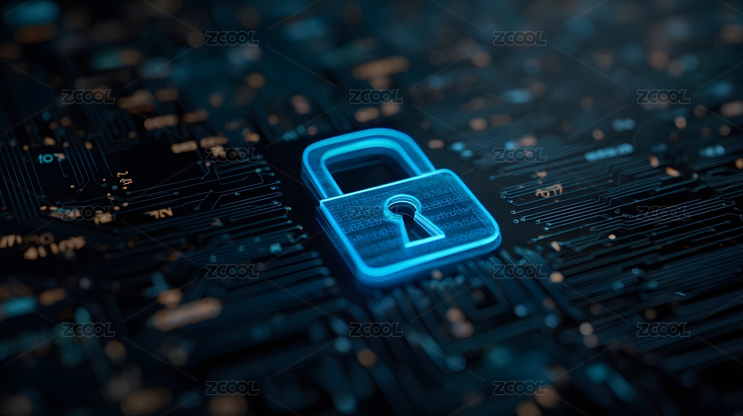 电路板上锁具,安全主题,光影效果,黑色