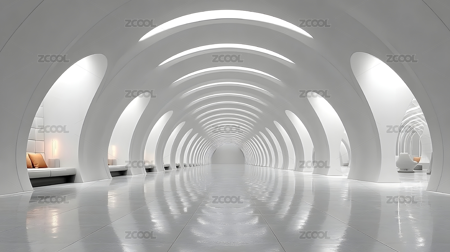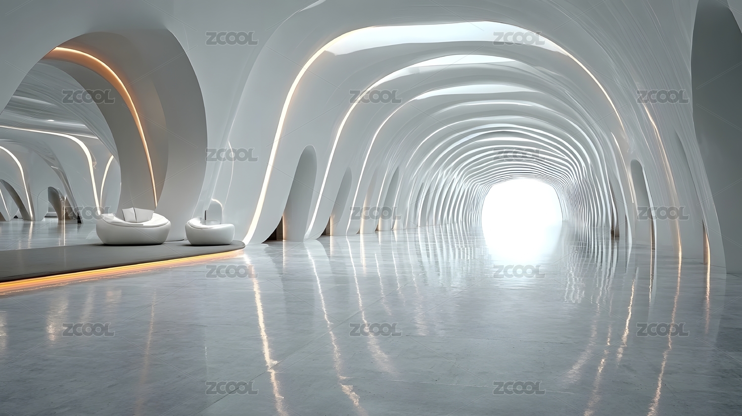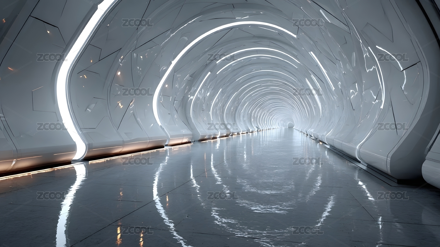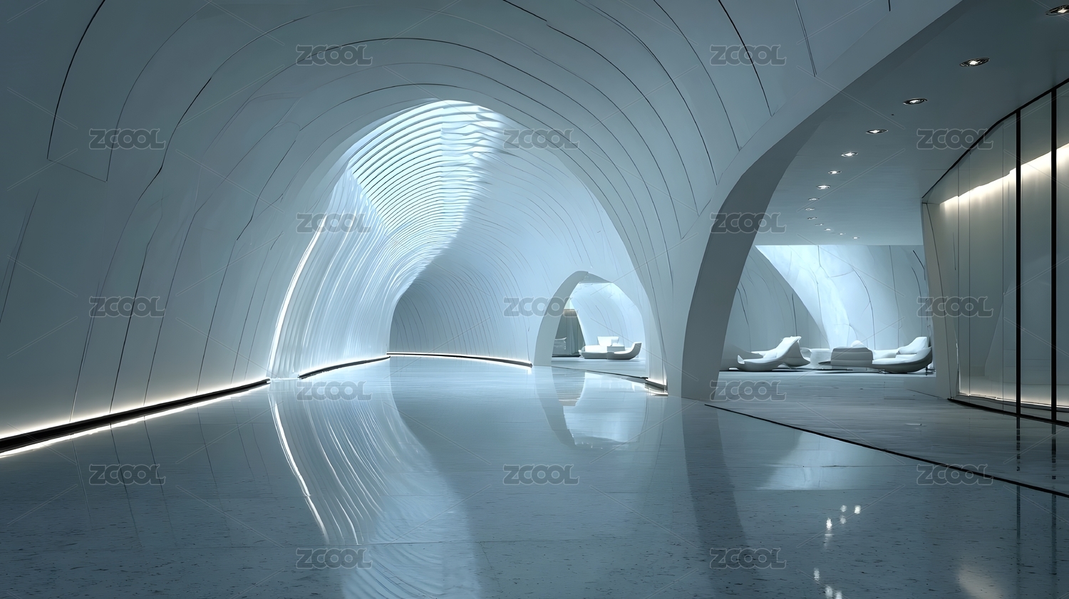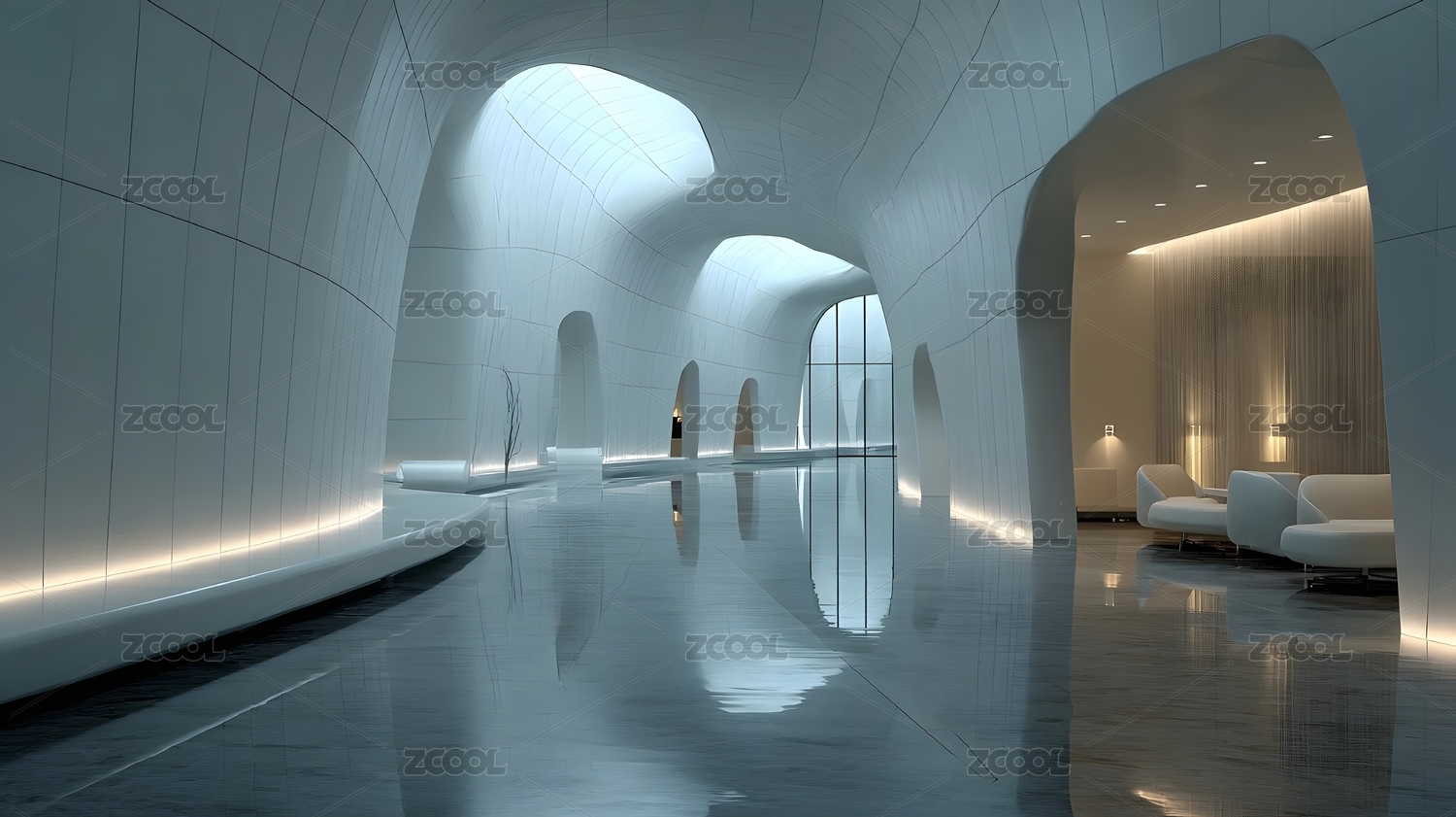 建筑,地面,灯光,白色,光滑,线条,未来感,反射,简约,圆形