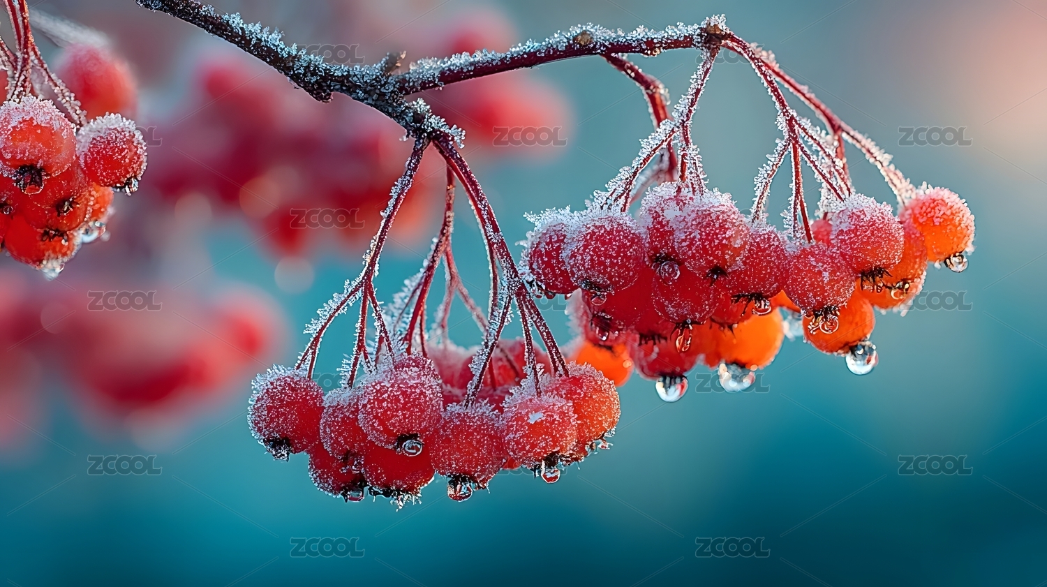 冬日霜冻红果枝