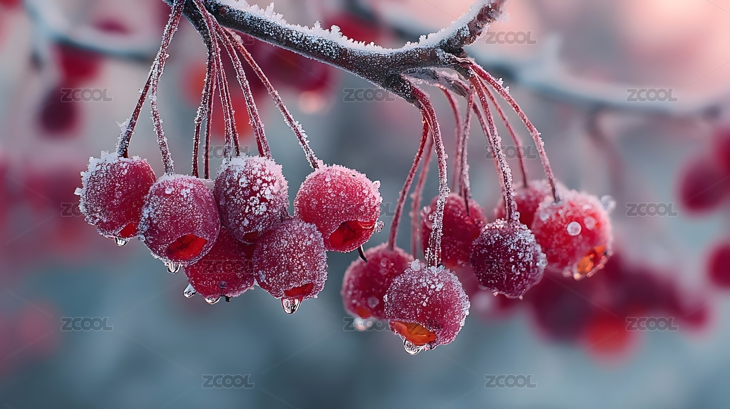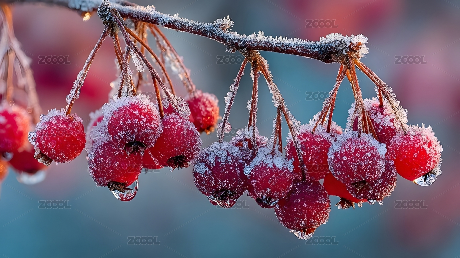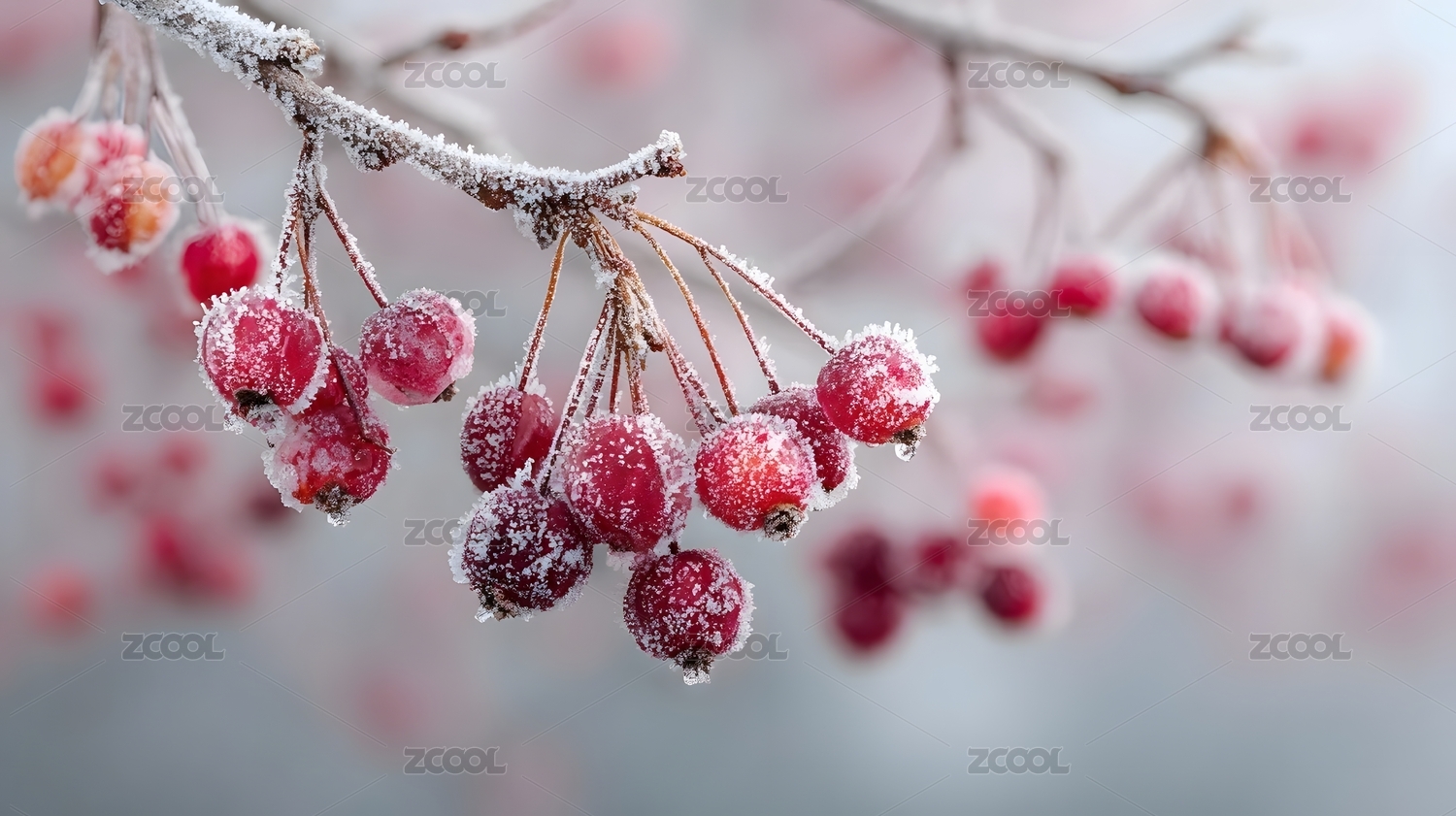 冬日冰霜红果枝