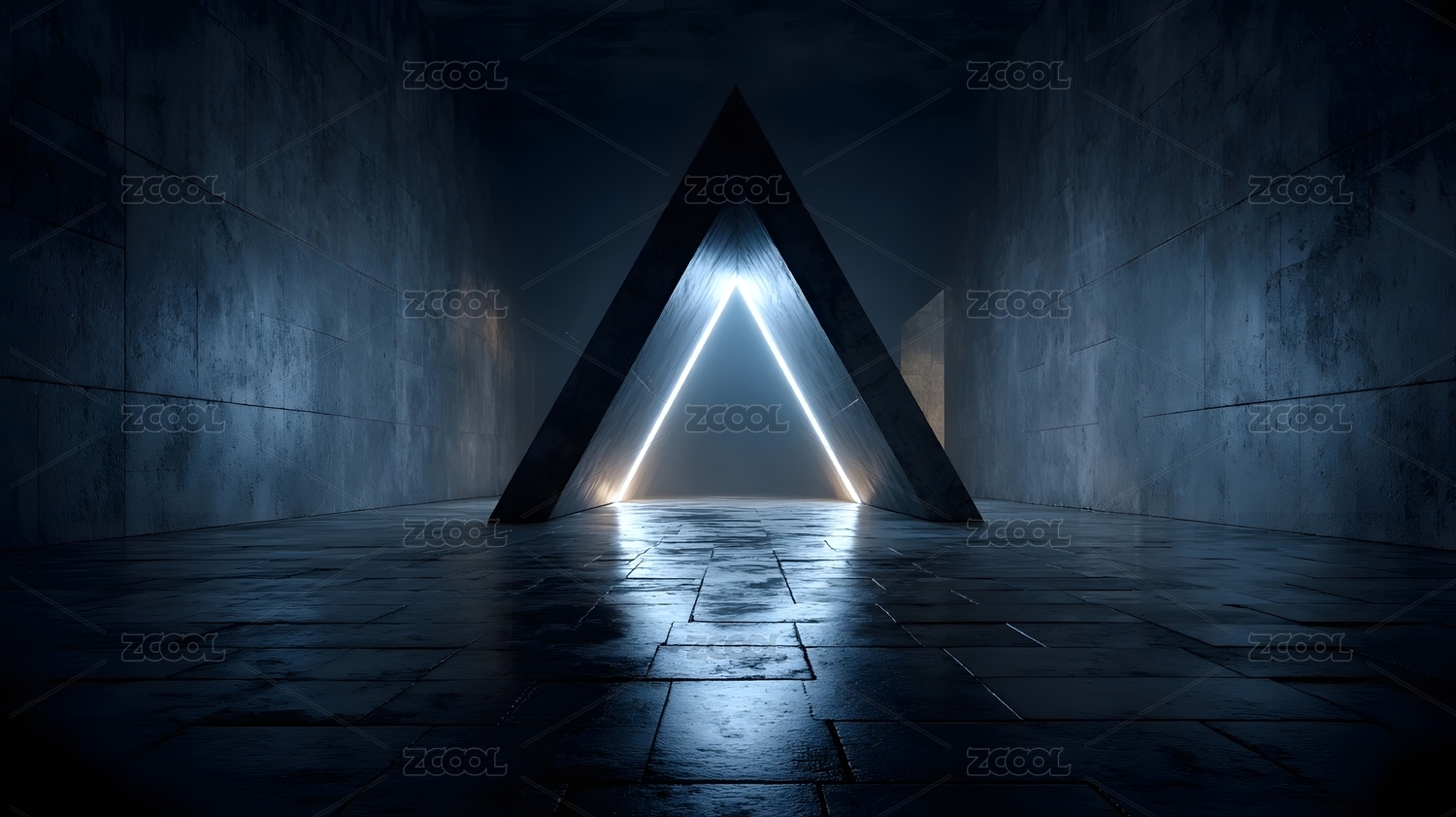 几何,未来感,地面,线条,反射,科技感,墙壁,暗色,光带,现代