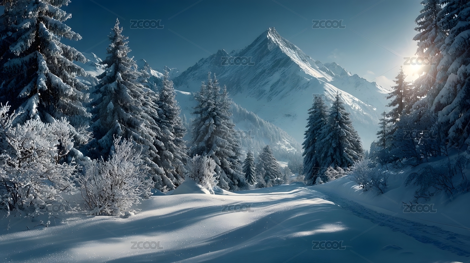 阴影,闪耀,山脉,树木,冬季,风景,雪地,山峰,自然,雪山