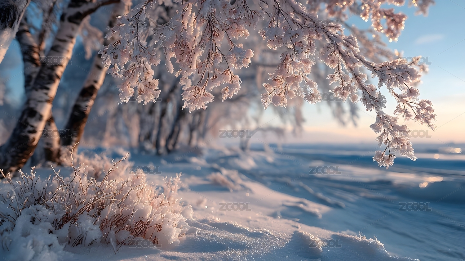 霜冻晴天明亮的阳光在寒冷的冬日森林风景