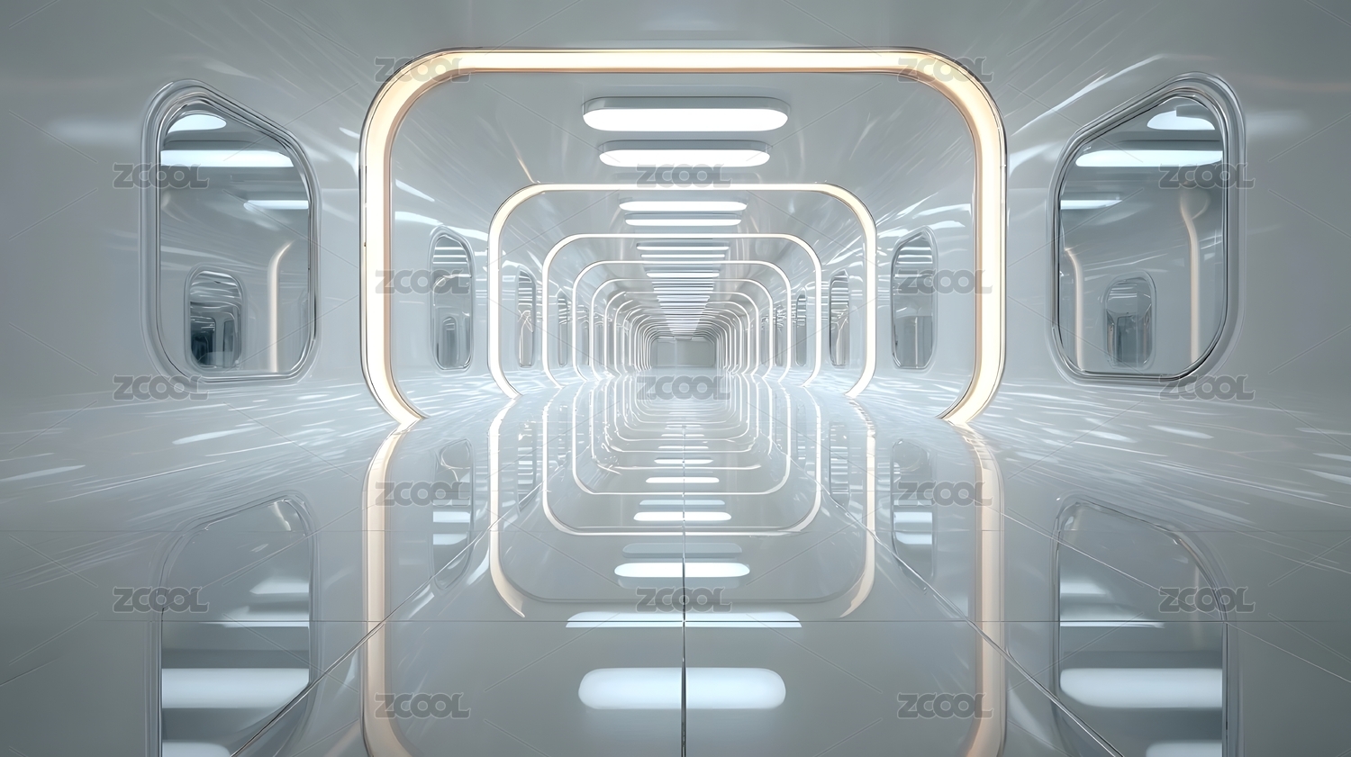 现代,几何,装饰,设计,时尚,简约,走廊,空间,光滑,反射
