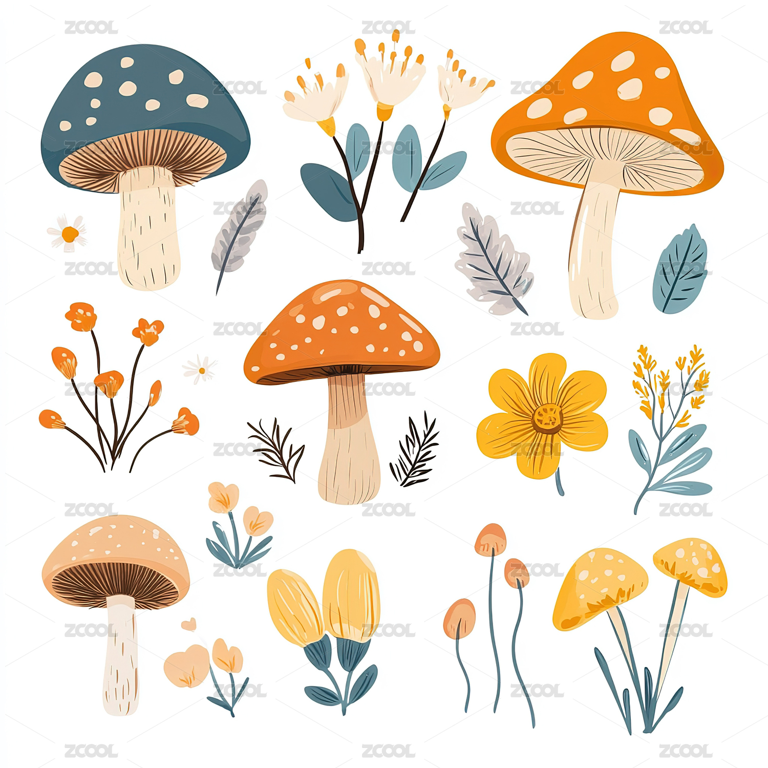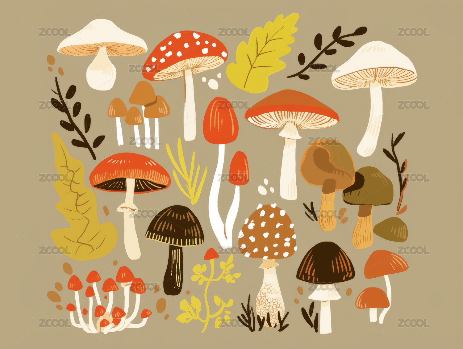 卡通蔬菜-口蘑,茶树菇,金针菇,松茸