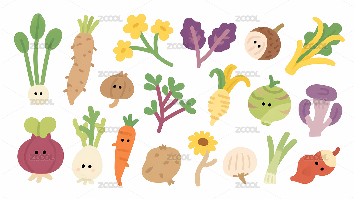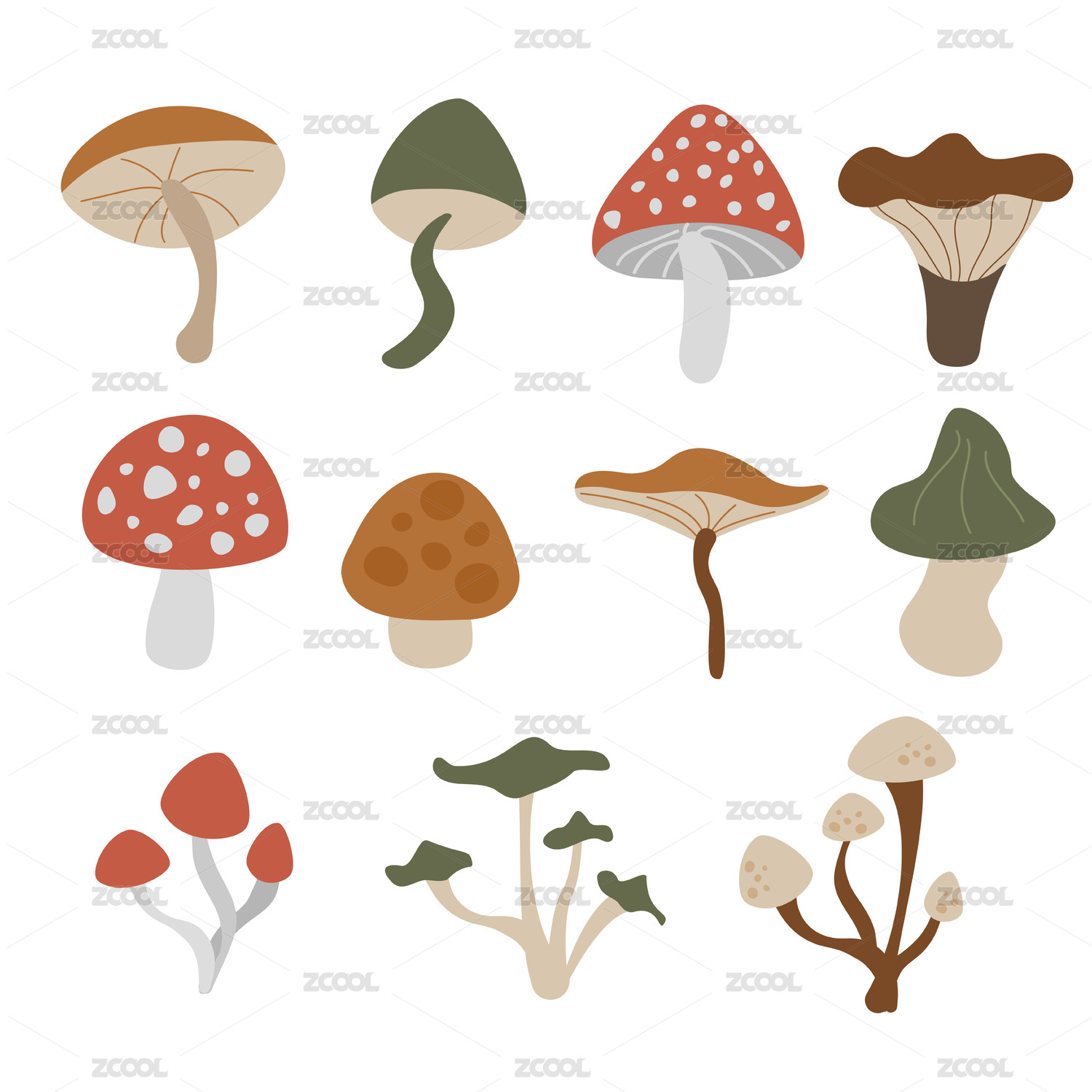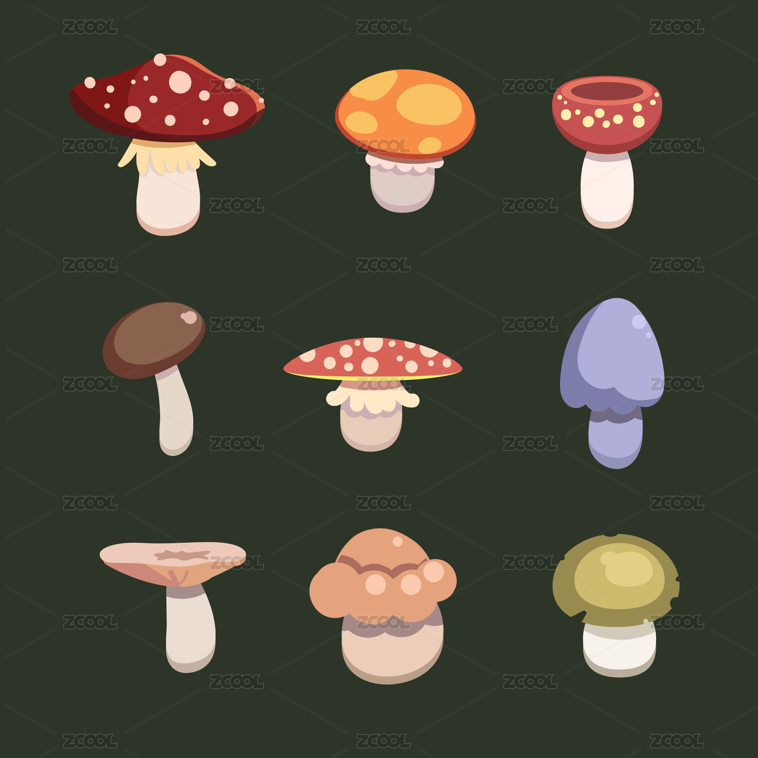 卡通蔬菜-见手青,平菇,杏鲍菇,竹荪