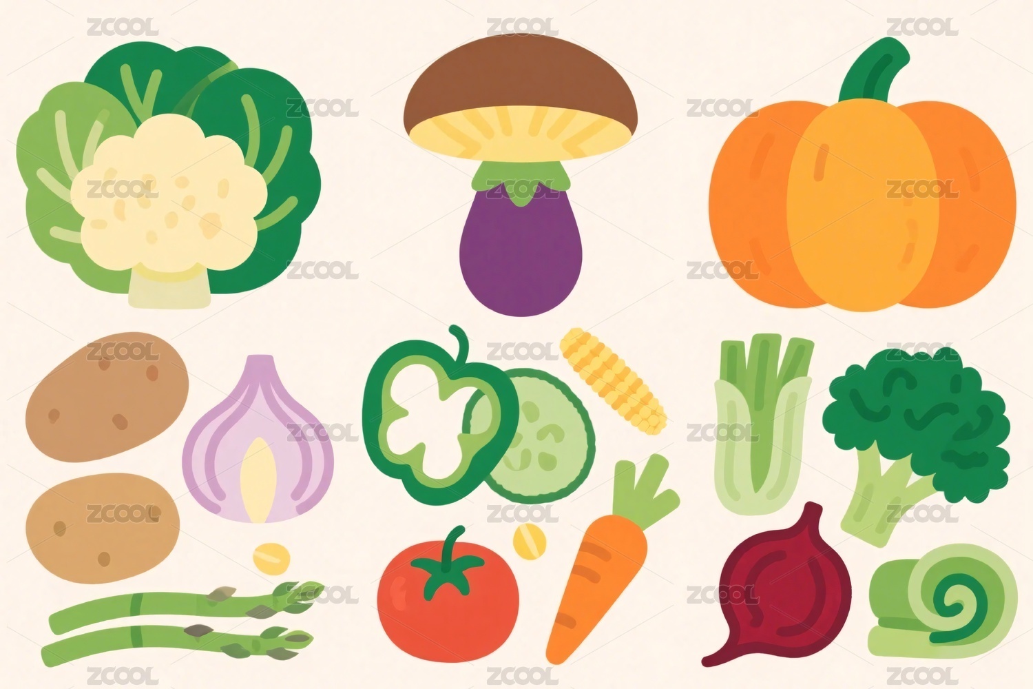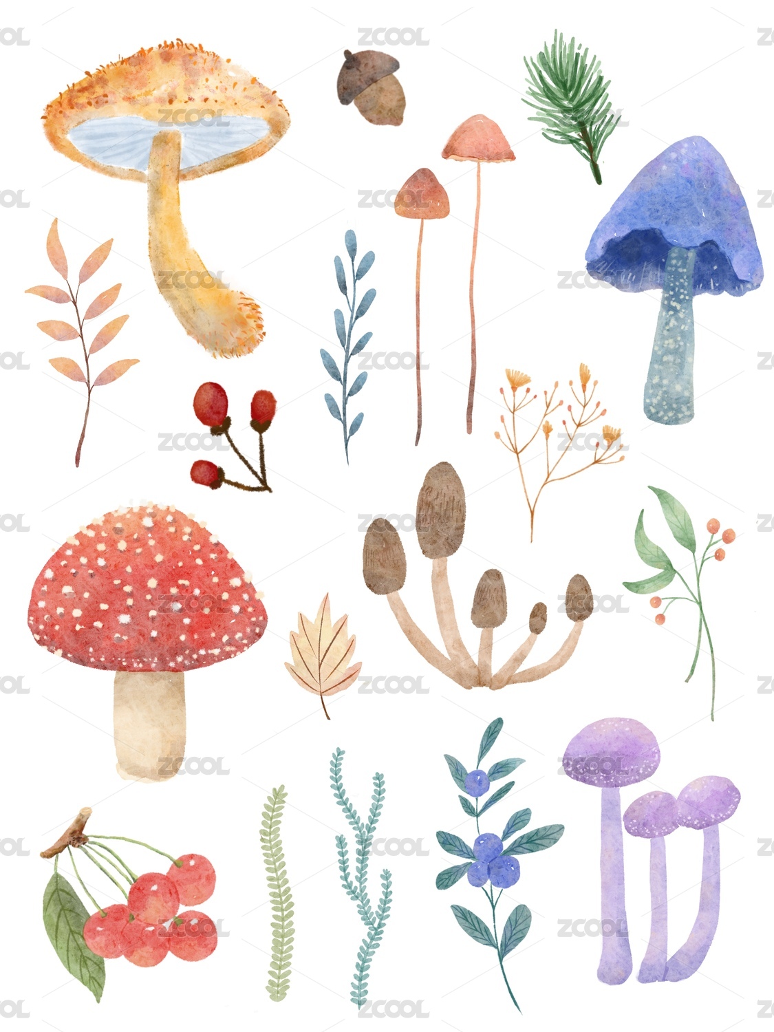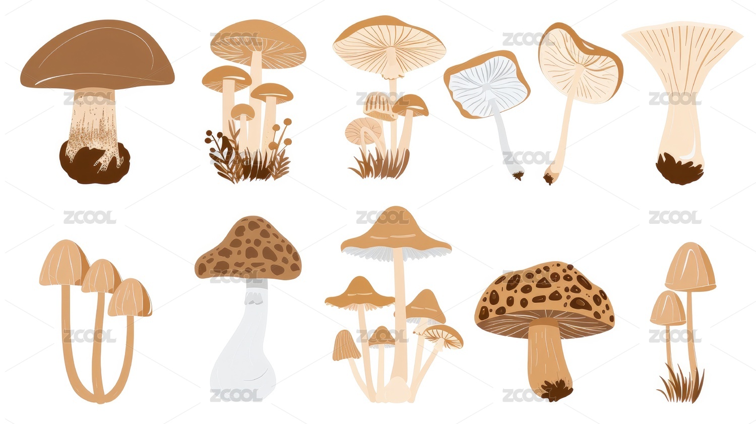 卡通蔬菜-见手青,平菇,杏鲍菇,竹荪