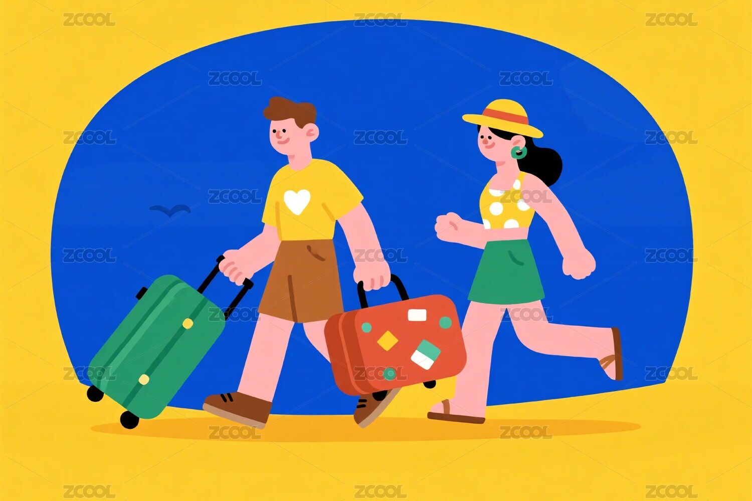 简约扁平情侣旅行夏日插画
