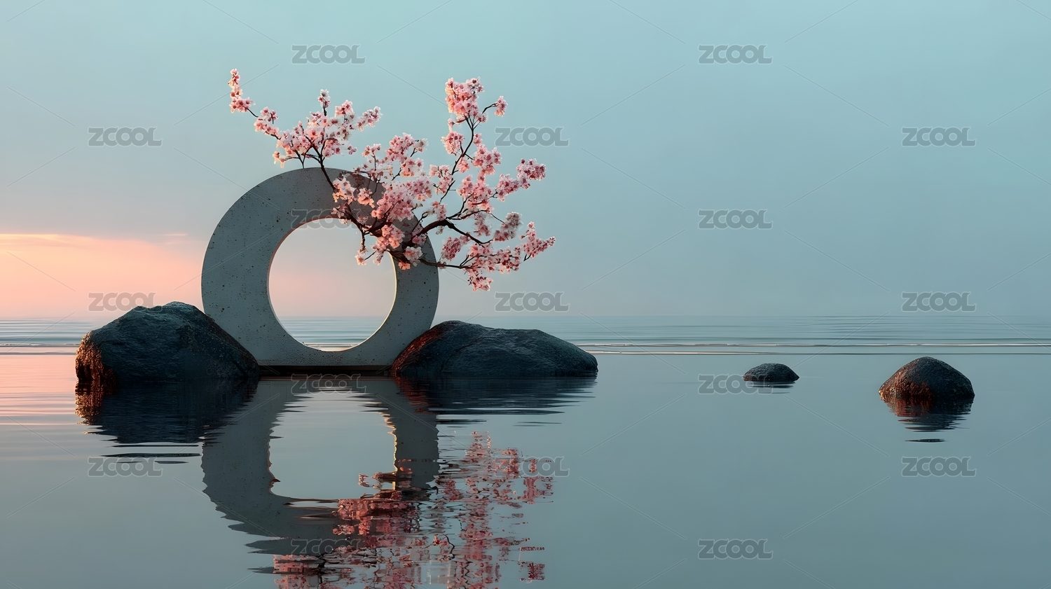 水中圆环与樱花枝