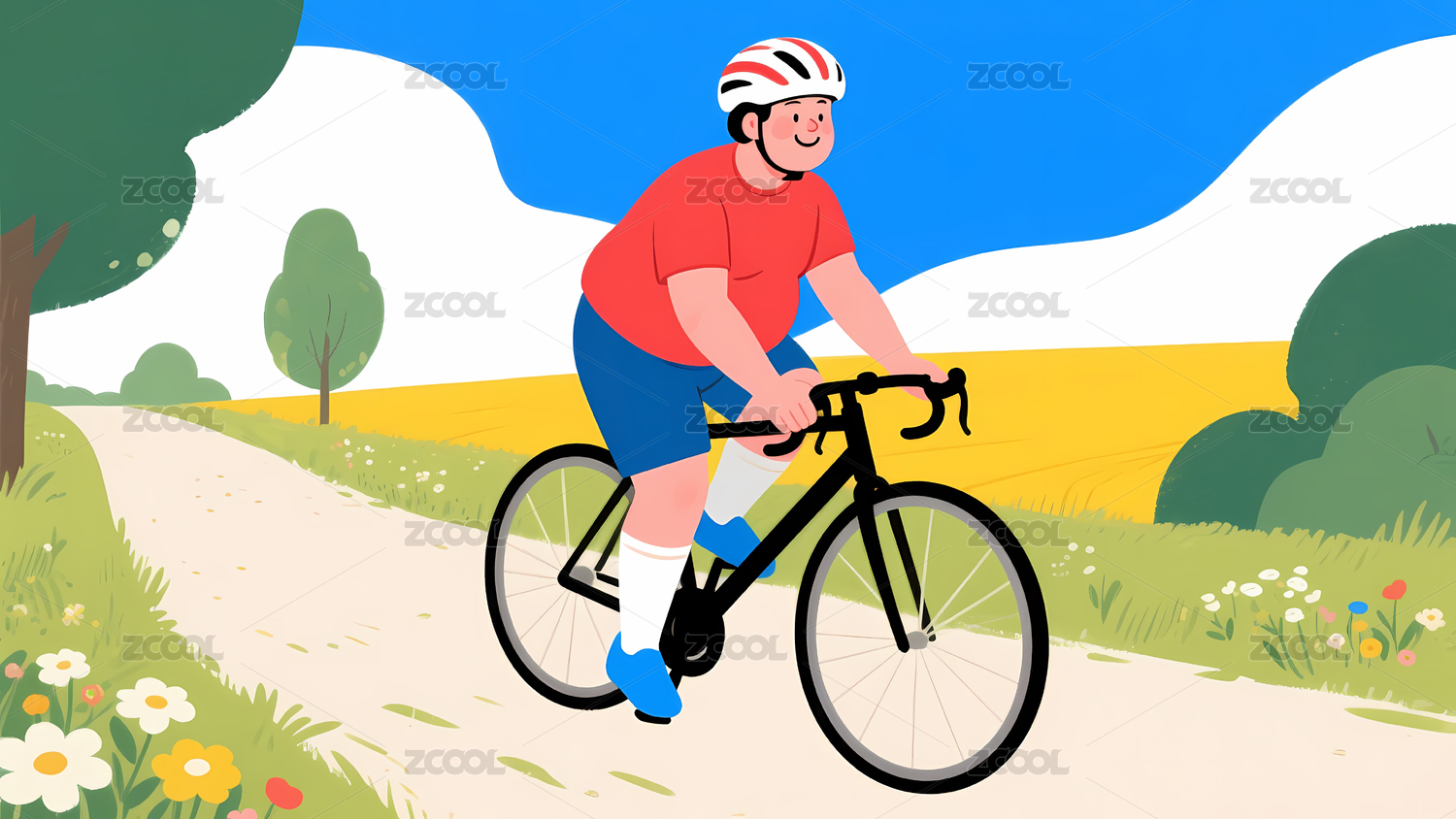 卡通,黄色,蓝色,插画,户外,骑车,运动员,头盔,短袖,短裤