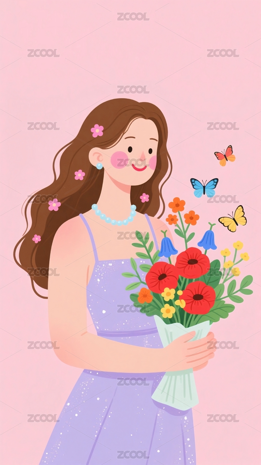 插画,扁平,自然,艺术,卡通,蓝色,粉色,绿色,背景,花朵