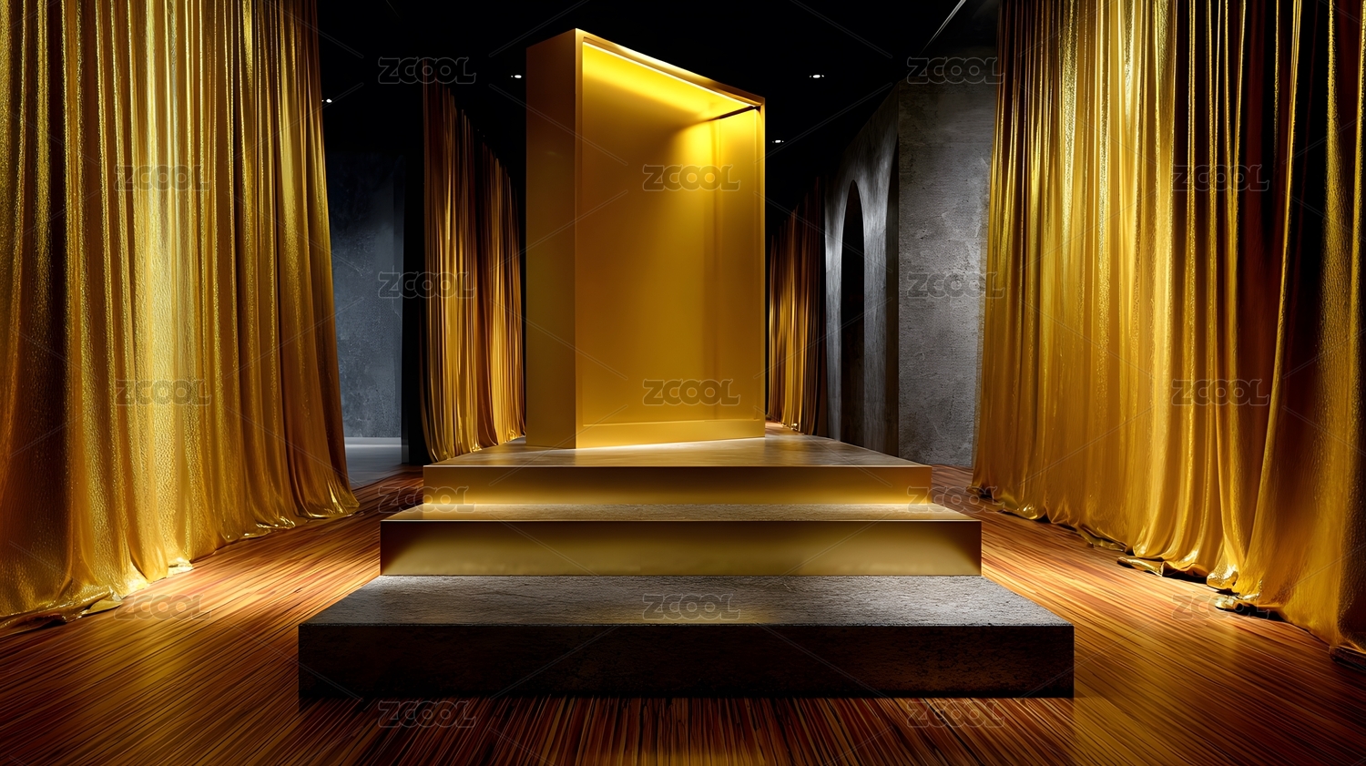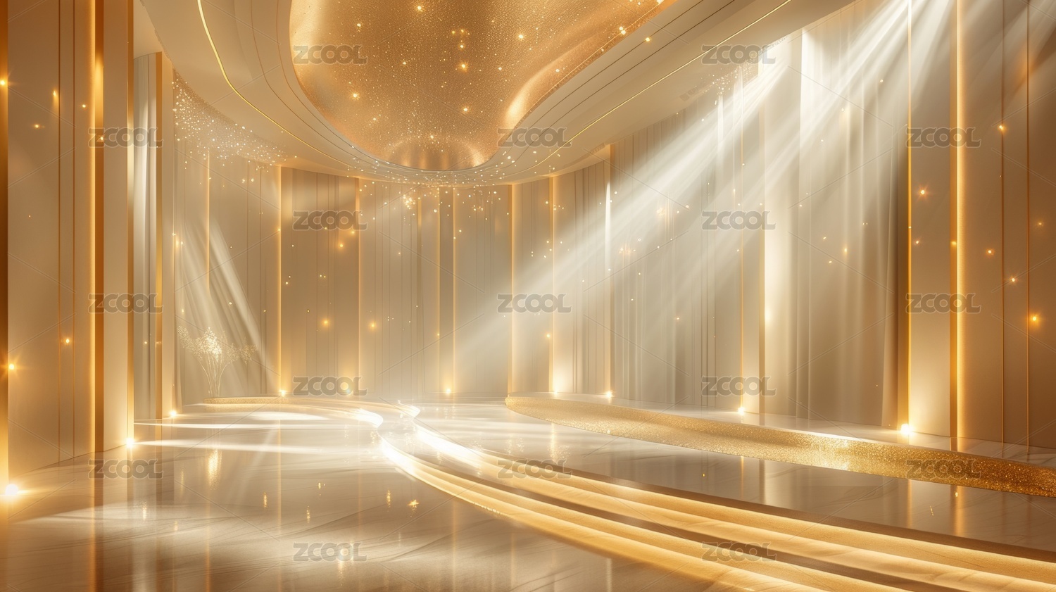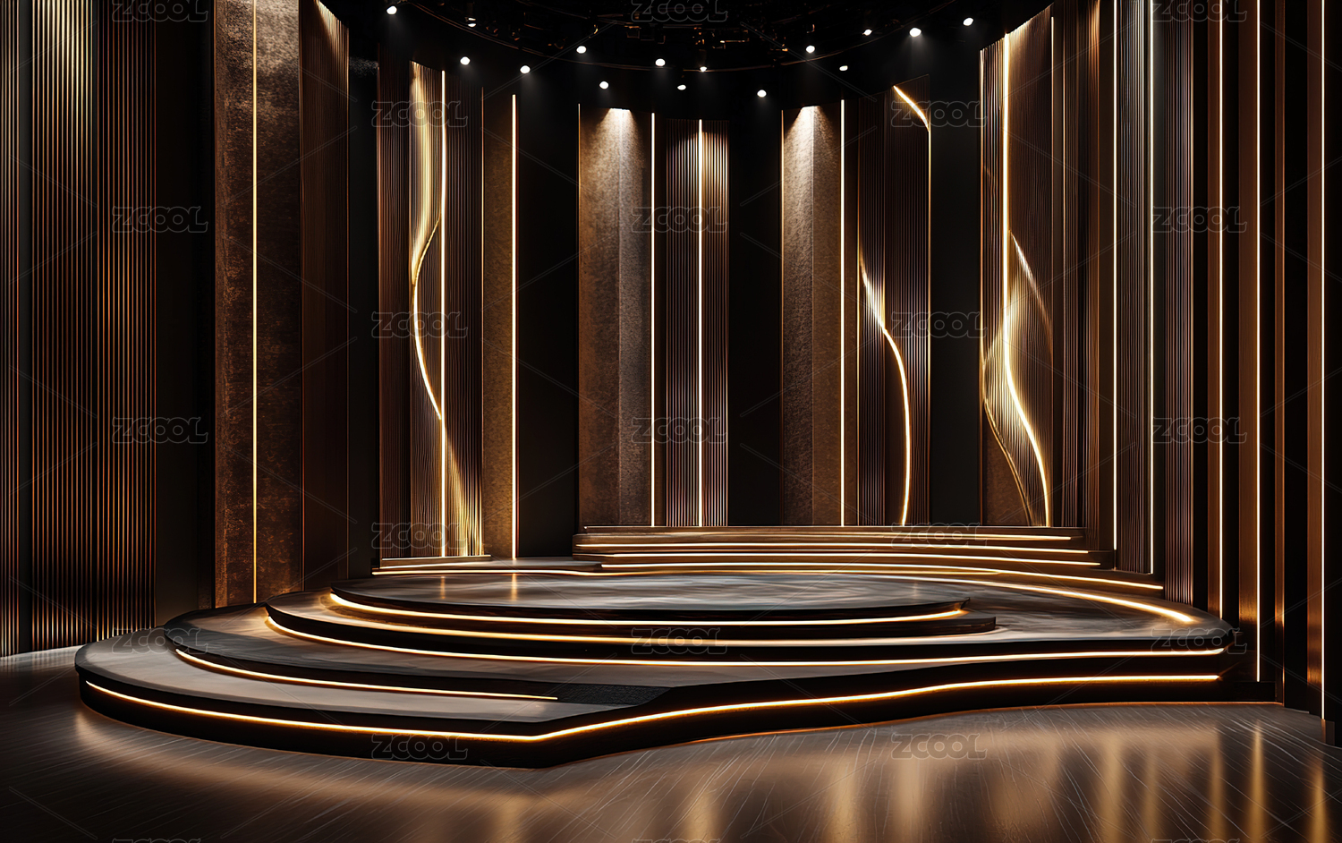 金色,舞台,灯光,室内,现代,空间,装饰,光影,金属,质感