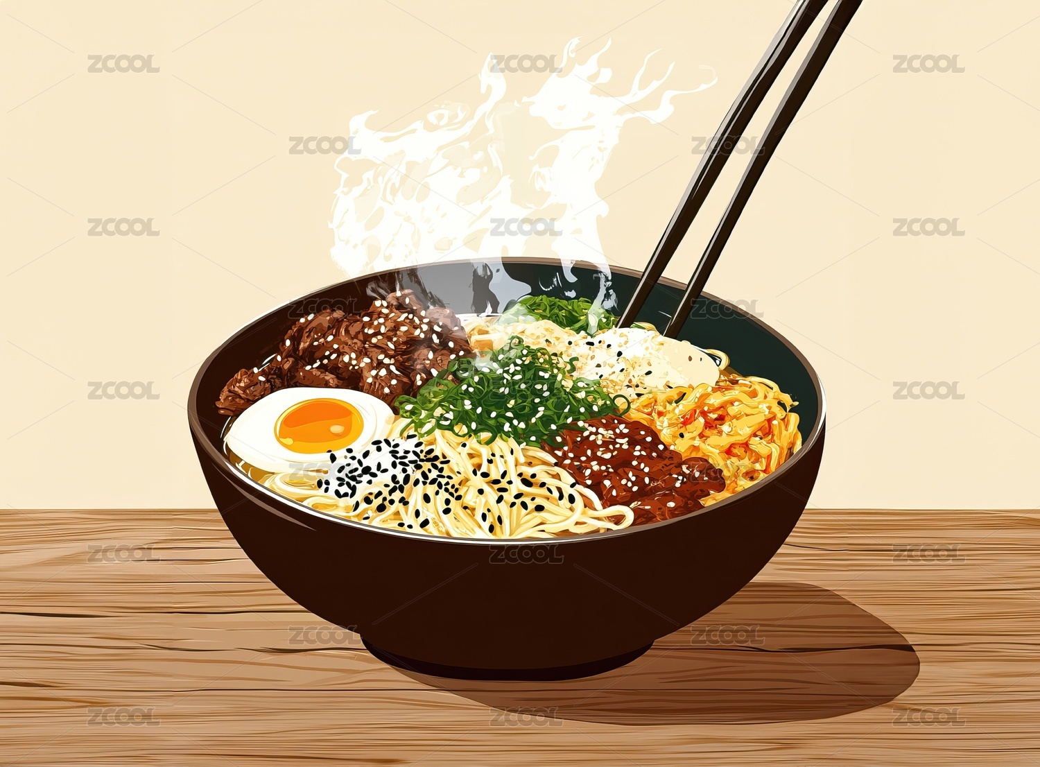 浮世绘食物拉面碗浪花设计筷子夹面条