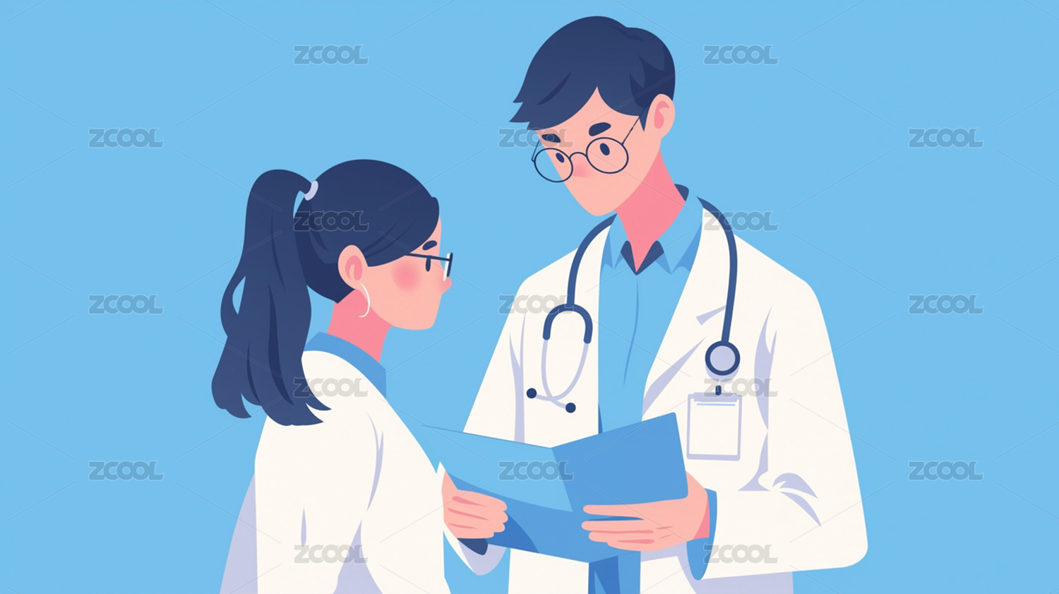 两位医生并肩站立手持文件