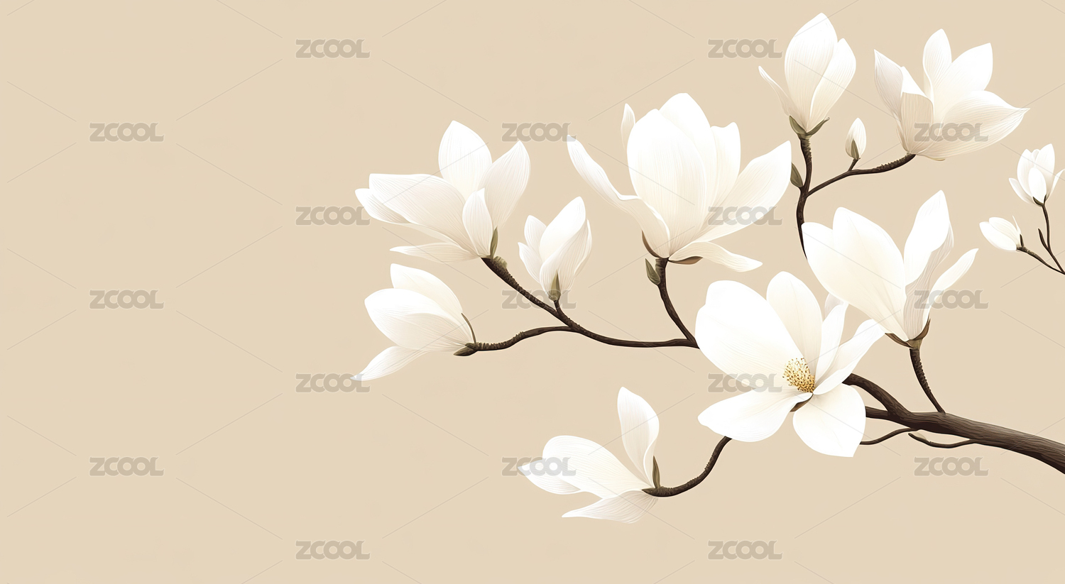 白木兰枝优雅花卉装饰图