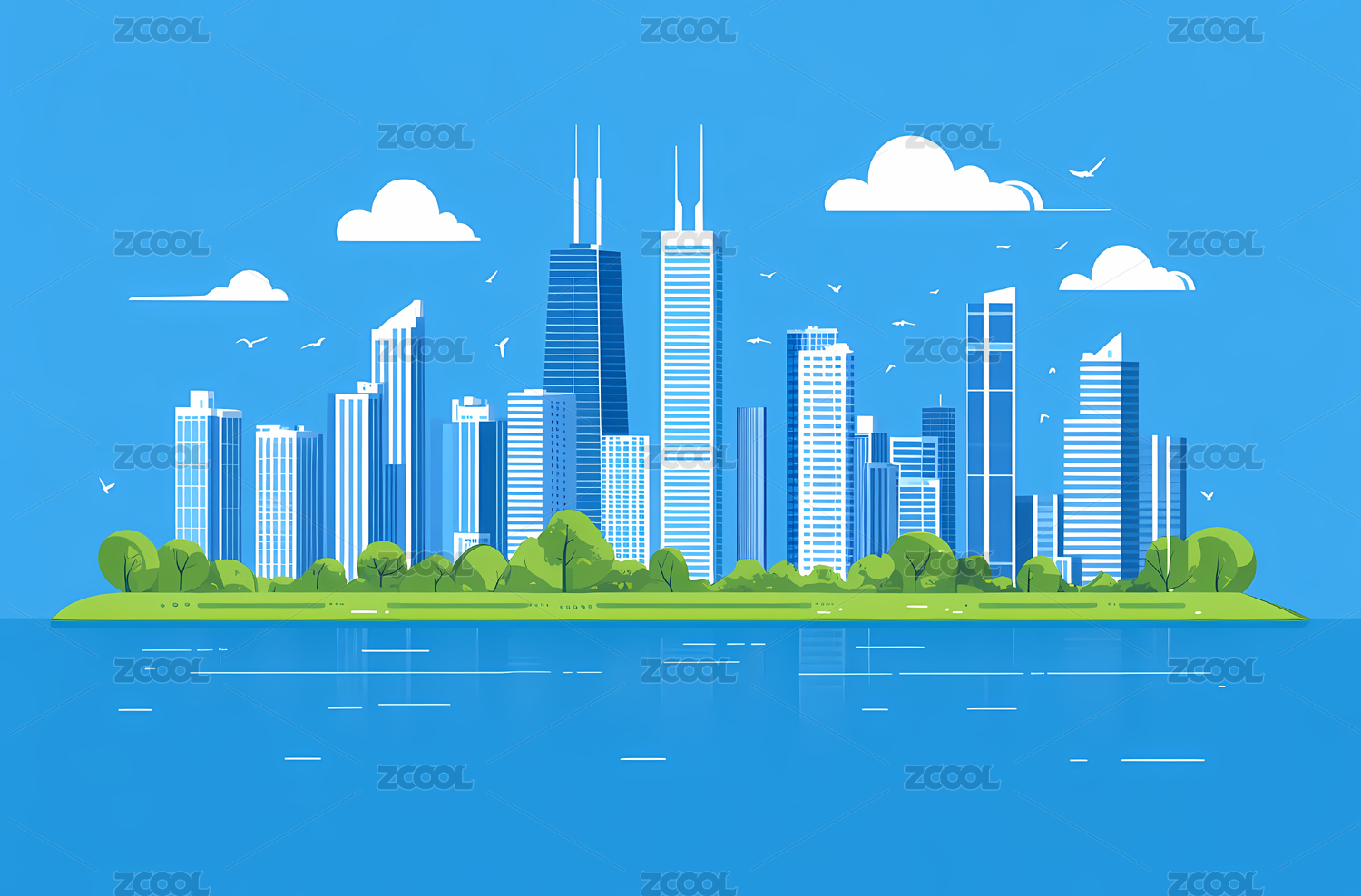 水面,倒影,城市,天际线,高楼,建筑,现代,简洁,背景,都市