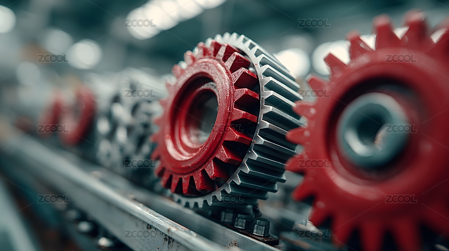 红色齿轮与工业氛围