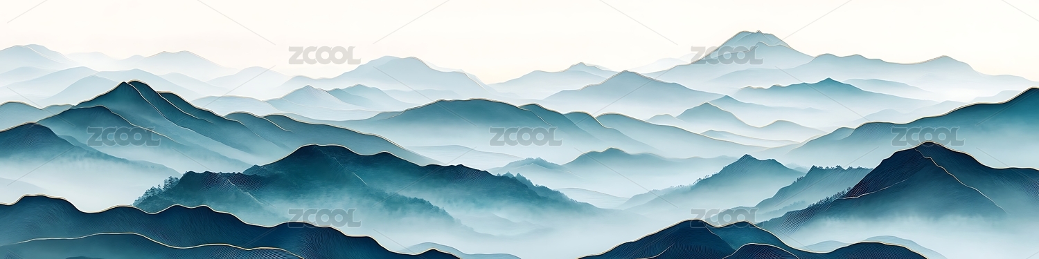 层峦叠嶂山水画 唯美意境山峰景色