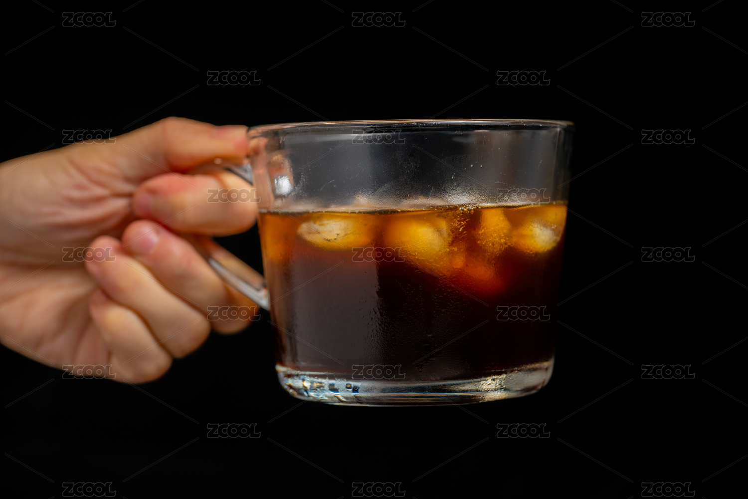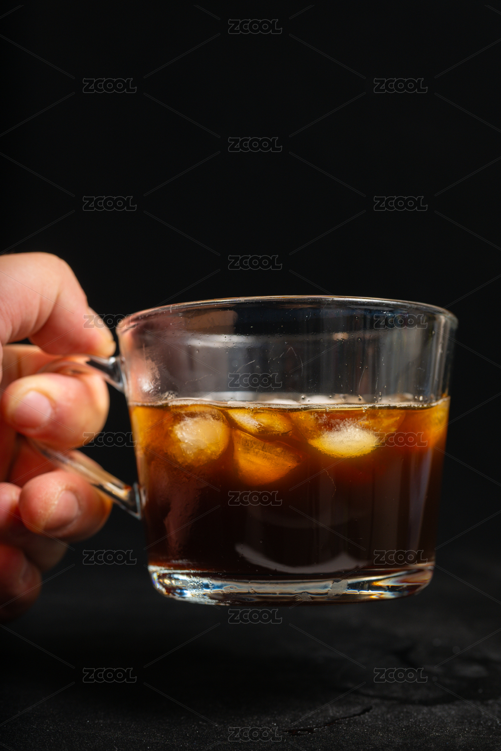 高品质,黑色,背景,透明,杯子,冷饮,咖啡,冰块,饮品,清凉
