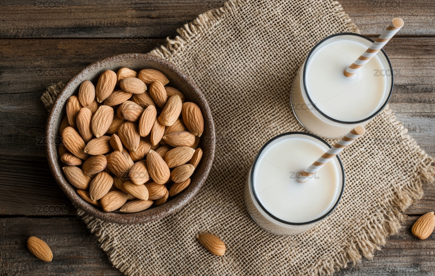 杏仁奶与杏仁果 静谧蓝调中的健康美味