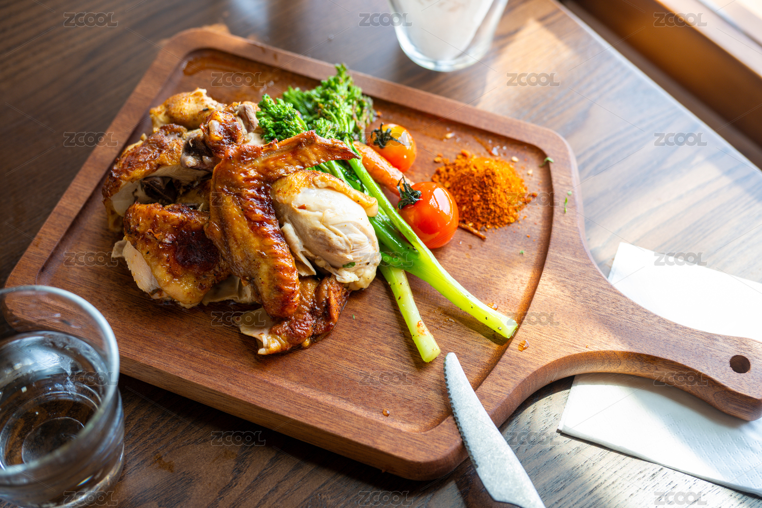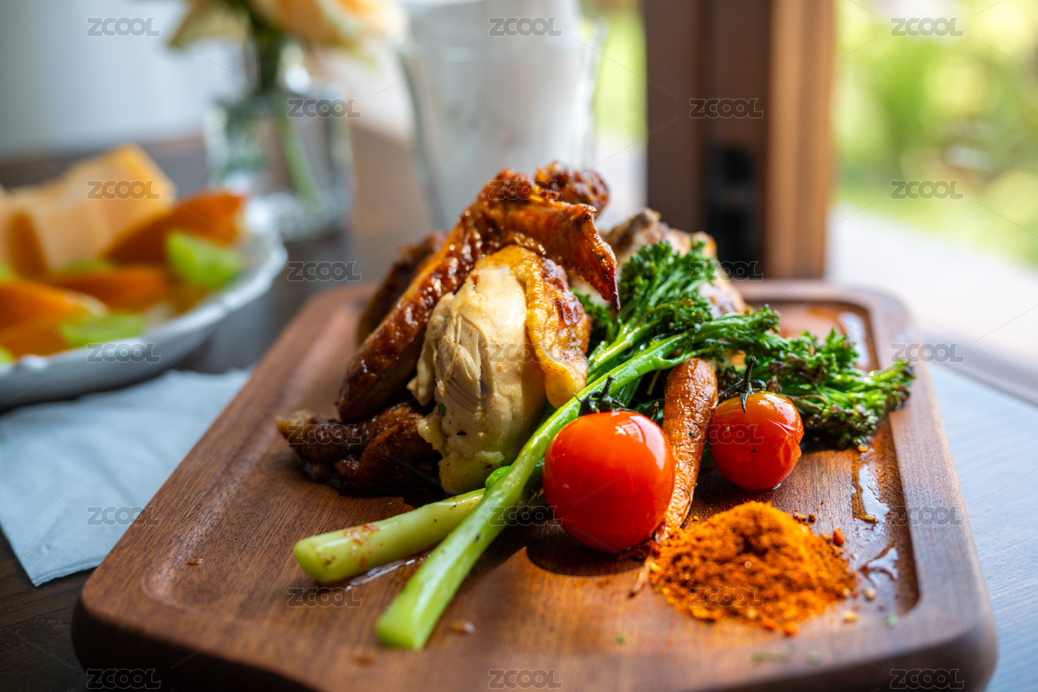美食,美味,健康,色彩,摆盘,餐厅,烤鸡,蔬菜,木板,西兰花