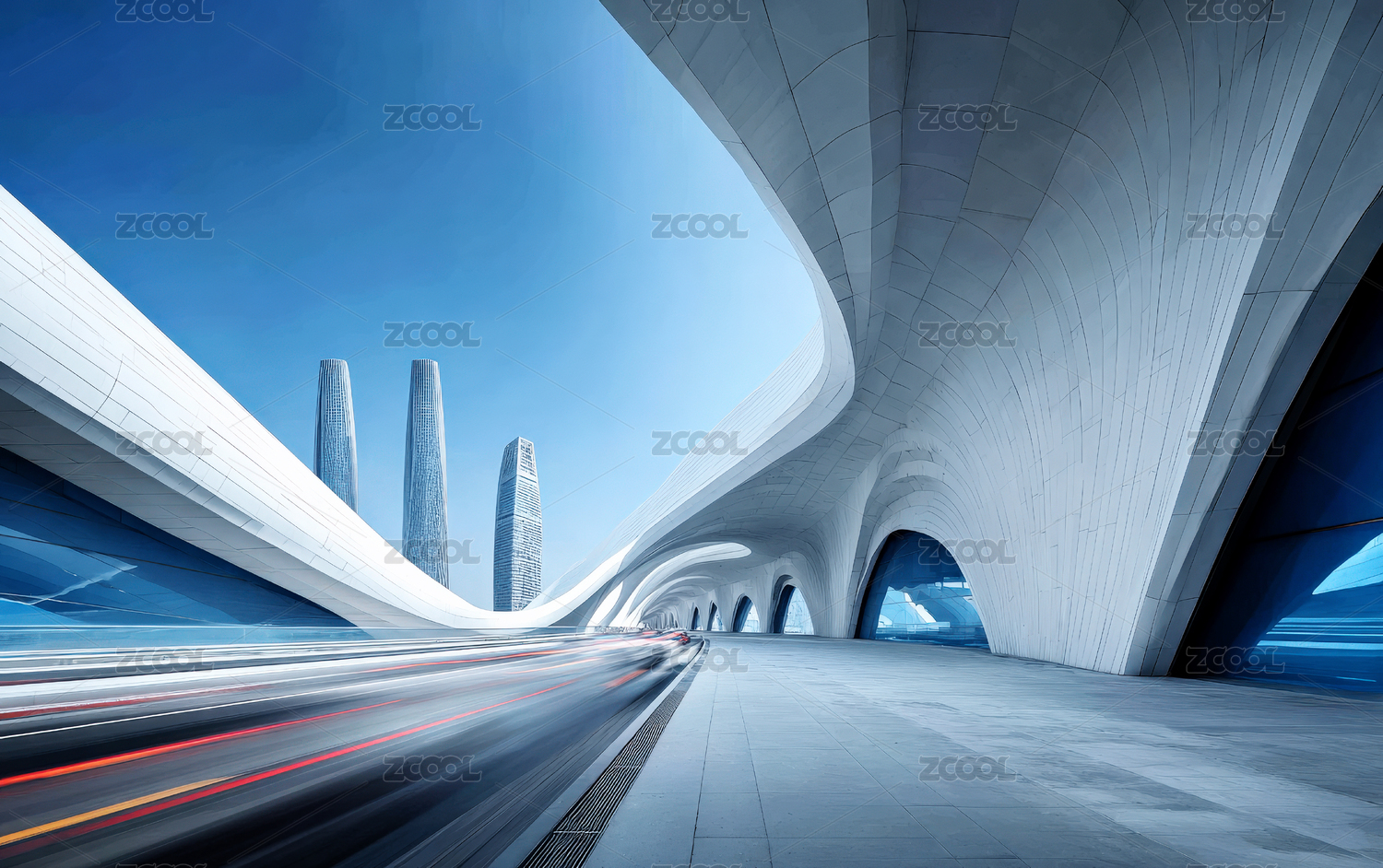 现代抽象流线未来感建筑汽车广告背景